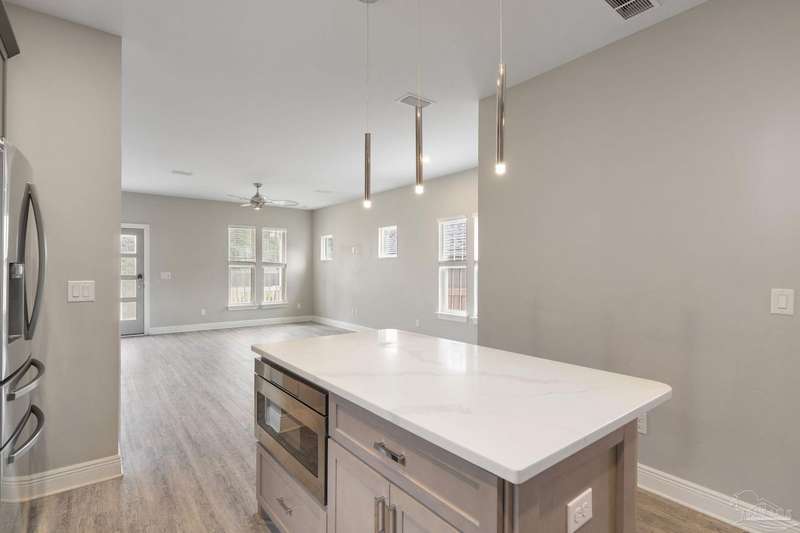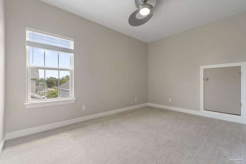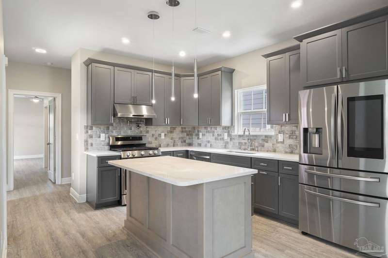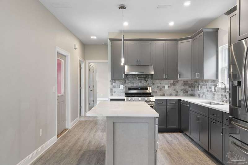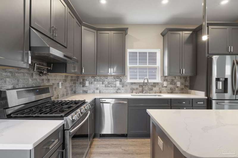 Welcome to this stunning two-story cottage nestled in the heart of downtown Pensacola-just steps from the city's most popular restaurants, shops, and the lively local scene. This 3-bedroom, 2.5-bath home offers the perfect blend of charm, convenience, and contemporary style. Step inside to find an inviting open layout with neutral tones and beautiful plank vinyl flooring throughout the main level. The kitchen is a true chef's dream-featuring sleek stainless steel appliances, marble countertops, a highly sought-after gas range, and even a pot filler for added convenience. The main floor includes a full bedroom and bath, ideal for guests or multigenerational living. Upstairs, the front bedroom opens to a charming private balcony, perfect for enjoying your morning coffee or Pensacola's vibrant energy. Outside, the fully fenced backyard offers privacy and low-maintenance living with an inground irrigation system-ideal for outdoor entertaining or peaceful relaxation. This home is move-in ready and has also proven to be a successful short-term rental, offering both lifestyle and investment opportunity in one. Don't miss your chance to own a stylish, centrally located gem in one of Pensacola's most desirable neighborhoods!