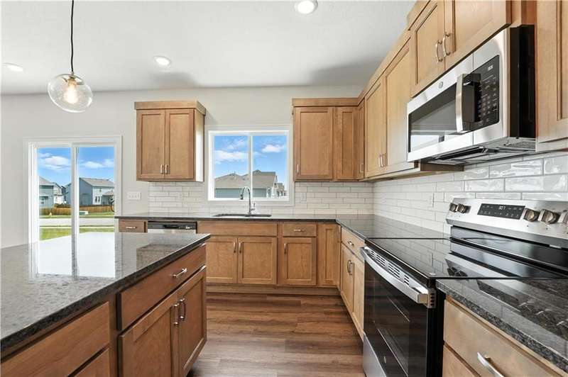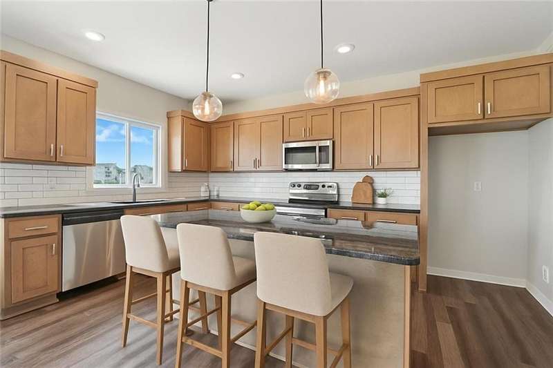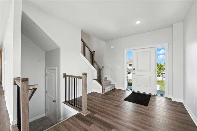 Welcome to the Serenity floor plan by Avital Homes! This beautiful 2-story home offers 4 bedrooms, 2.5 bathrooms, and a spacious 3-car garage. The main level is warm and inviting with hardwood floors throughout and a stylish 50 linear electric fireplace that makes the living area feel cozy and welcoming. The kitchen is a chefs delight with an upgraded tile backsplash, expanded cabinetry choices, and handy features like a pull-out trash bin drawer. Upstairs, youll love having all four bedrooms and the laundry room together, including a bright and airy primary suite with transom windows and a spa-like bath featuring tiled shower walls and upgraded finishes. Thoughtful details such as sculptured stair carpet, enhanced plumbing fixtures, and a full irrigation system add both comfort and convenience. Designed with modern living in mind, this home blends style, function, and charm all in one. Pictures are of a previously finished home.