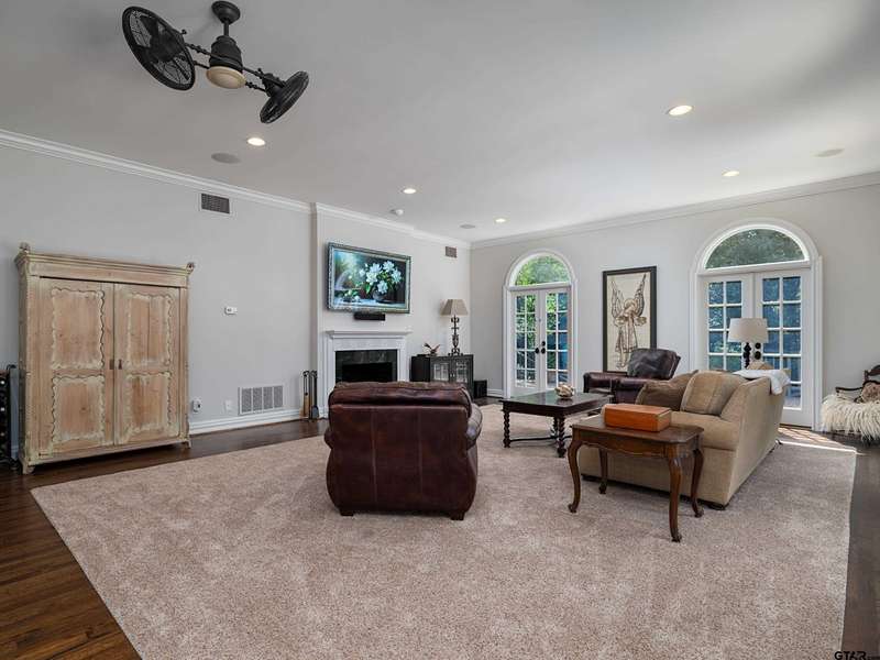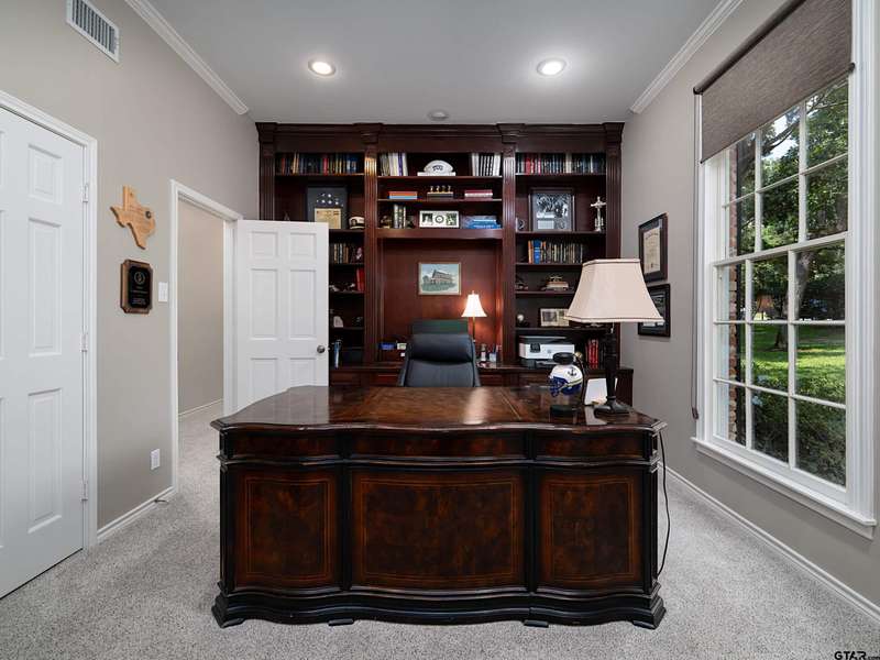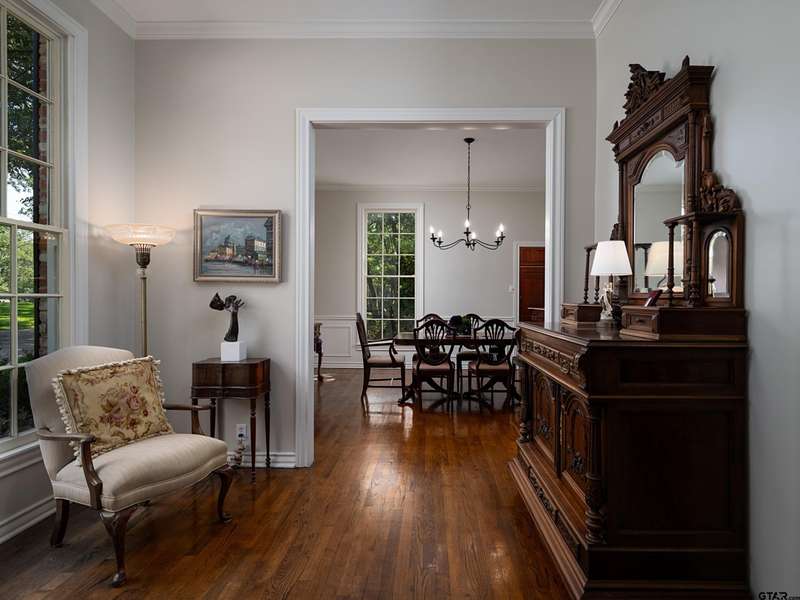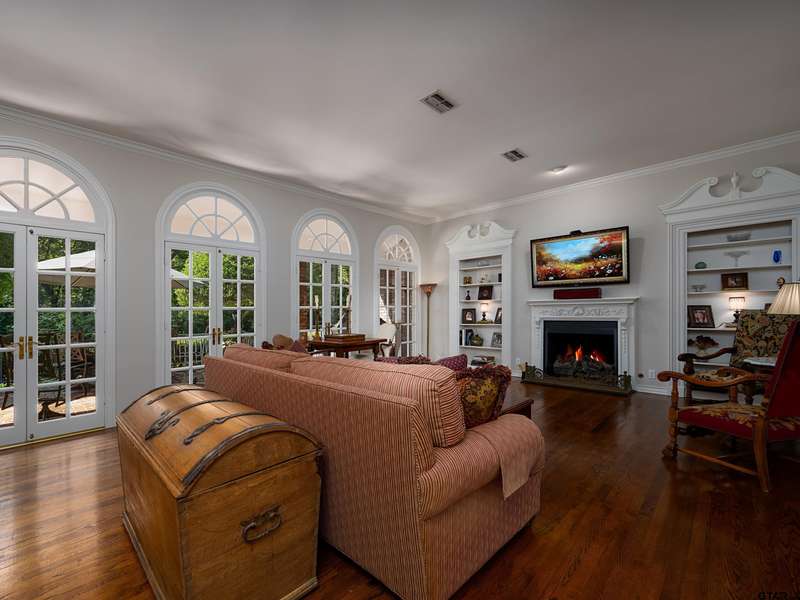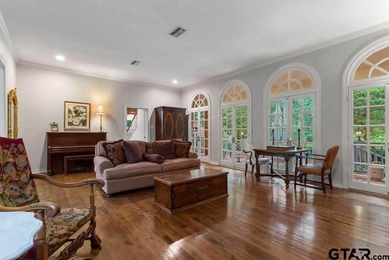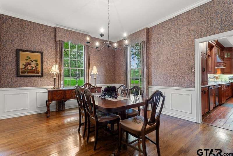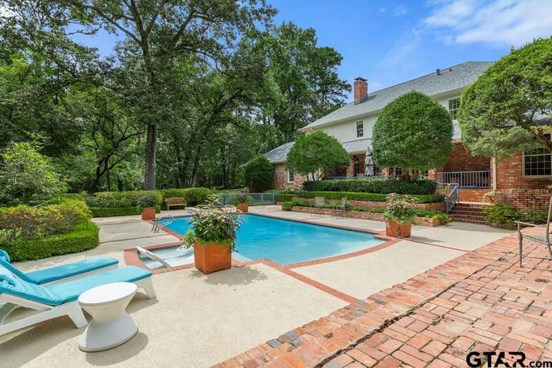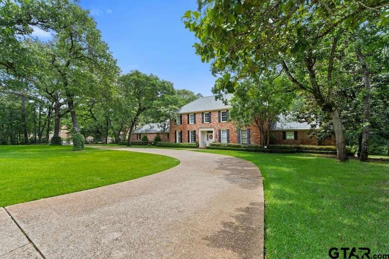 This stunning five bedroom, four full, plus 3 half bath Georgian-style estate offers over three acres of private, wooded oasis which combines convenience with tranquility perfectly located on Wilder Way in South Tyler, The home itself boasts over 6,300 square feet. It features three distinct living areas, two dining areas, a dedicated office, and a comfortable guest suite, plus additional flexible space. The formal living room is highlighted by beautiful wood flooring, built-in shelving, a lovely fireplace, and a wall of double French doors that showcase an amazing view. The elegant dining room is spacious and perfect for gatherings. The kitchen and adjoining hearth room are truly a dream, featuring brick floors, an abundance of solid cherry cabinets, a large center island, granite countertops, double ovens, a 6-burner gas cooktop, a panel-ready refrigerator, a warming drawer, and a custom wood and copper hood vent. The cozy hearth room includes wood beams, a corner fireplace, a built-in hutch, a kitchen desk, two pantries, and a convenient second staircase. The enormous family room features two walls of double French doors, a fabulous wet bar perfect for entertaining, and another beautiful fireplace. The primary suite is a private retreat with ample closet and cabinet space, separate his-and-hers dressing areas, a luxurious soaking tub, a huge shower, and dedicated space for exercise equipment. The office is conveniently located. Upstairs, you'll find three additional bedrooms, two baths, a flexible space, & an additional living/play room. The exterior of the property is equally impressive, w/ a circle driveway & oversized 3-car garage providing ample parking. A heated and cooled area off of the garage what is ideal for an art studio or catering kitchen with a glass overhead door. The three-acre grounds feature a large swimming pool & a huge brick patio for enjoying the peaceful tranquility. With too many features to list this opportunity does not come often.