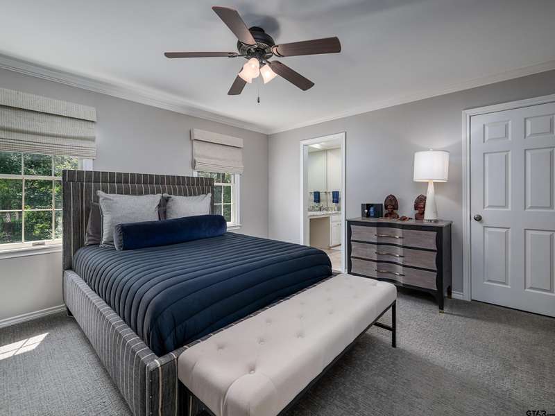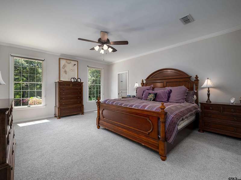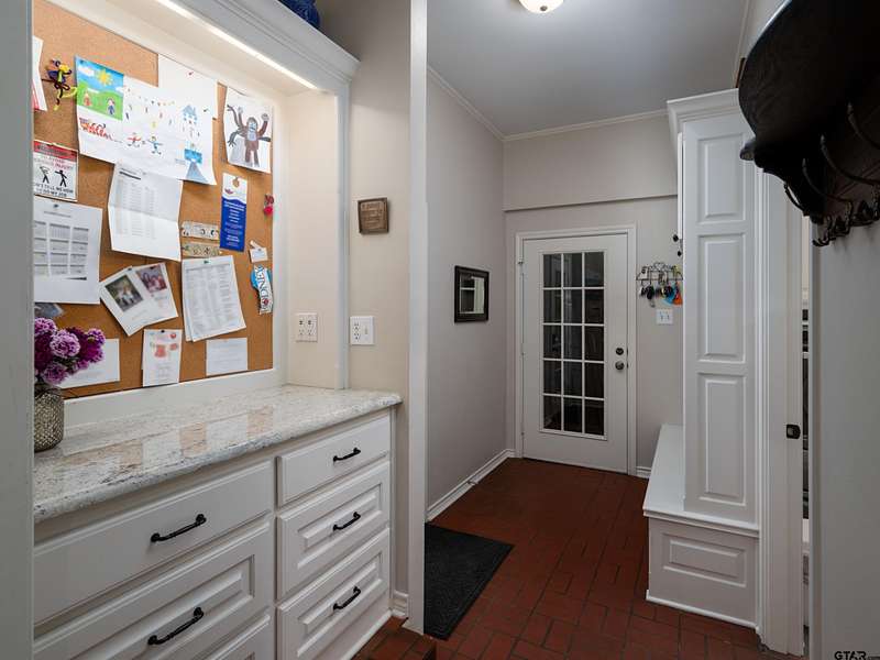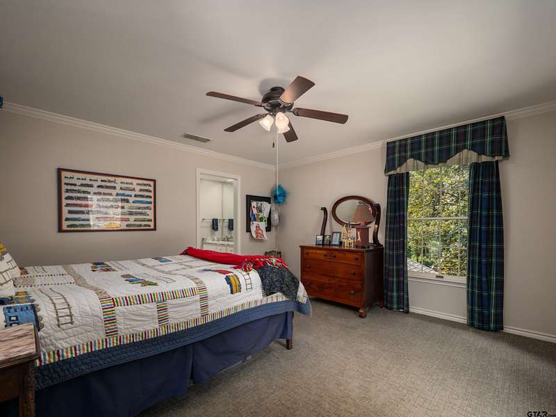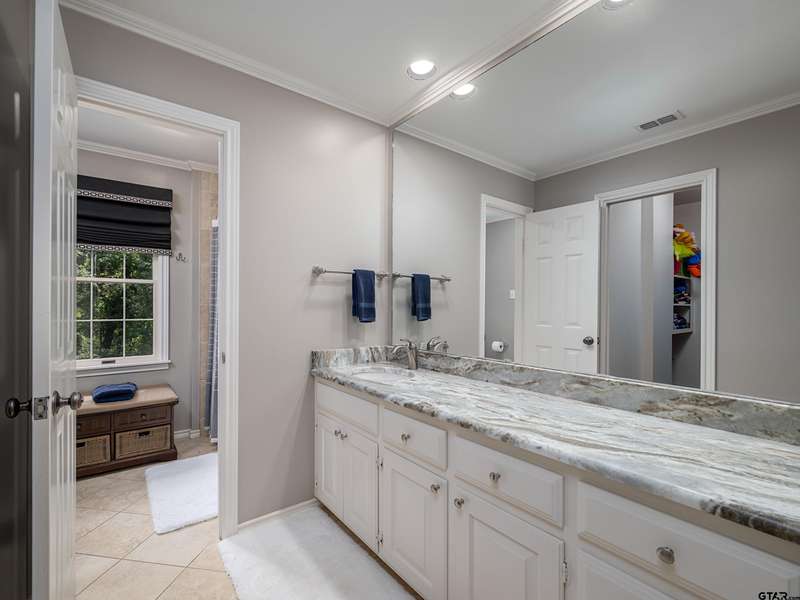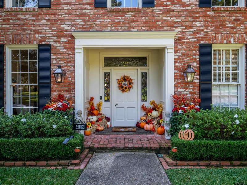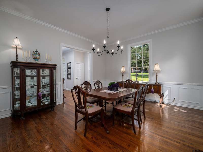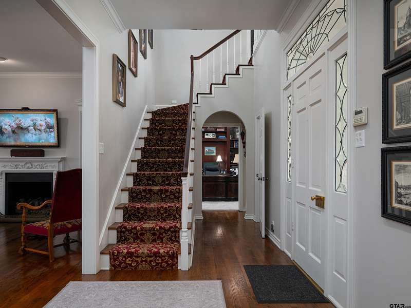 This stunning five bedroom, four full, plus 3 half bath Georgian-style estate offers over three acres of private, wooded oasis which combines convenience with tranquility perfectly located on Wilder Way in South Tyler, The home itself boasts over 6,300 square feet. It features three distinct living areas, two dining areas, a dedicated office, and a comfortable guest suite, plus additional flexible space. The formal living room is highlighted by beautiful wood flooring, built-in shelving, a lovely fireplace, and a wall of double French doors that showcase an amazing view. The elegant dining room is spacious and perfect for gatherings. The kitchen and adjoining hearth room are truly a dream, featuring brick floors, an abundance of solid cherry cabinets, a large center island, granite countertops, double ovens, a 6-burner gas cooktop, a panel-ready refrigerator, a warming drawer, and a custom wood and copper hood vent. The cozy hearth room includes wood beams, a corner fireplace, a built-in hutch, a kitchen desk, two pantries, and a convenient second staircase. The enormous family room features two walls of double French doors, a fabulous wet bar perfect for entertaining, and another beautiful fireplace. The primary suite is a private retreat with ample closet and cabinet space, separate his-and-hers dressing areas, a luxurious soaking tub, a huge shower, and dedicated space for exercise equipment. The office is conveniently located. Upstairs, you'll find three additional bedrooms, two baths, a flexible space, & an additional living/play room. The exterior of the property is equally impressive, w/ a circle driveway & oversized 3-car garage providing ample parking. A heated and cooled area off of the garage what is ideal for an art studio or catering kitchen with a glass overhead door. The three-acre grounds feature a large swimming pool & a huge brick patio for enjoying the peaceful tranquility. With too many features to list this opportunity does not come often.