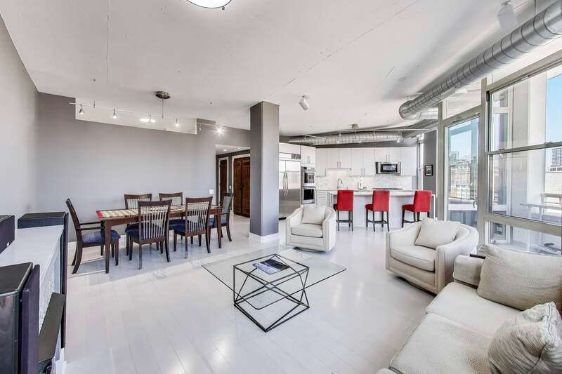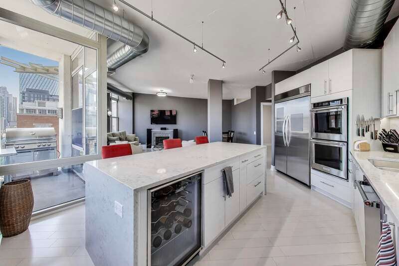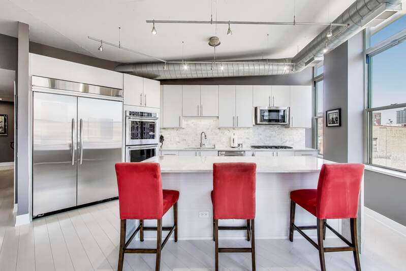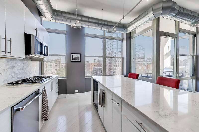 Exceptional West Loop corner penthouse -- centrally located to the best of West Loop and walkable to Fulton Market, Downtown, Metra station, and CTA. Easy walk to Bartelme Park and Skinner Park. A 5-block drive to both I90 and I290. Great views of West Loop / downtown from all rooms. Floor-to-ceiling windows allow tons of natural light and highlight the penthouse experience. Remodeled by the current owner. No expense was spared. Generous bedroom sizes, open layout. Bedrooms located away from the living space -- making this oversized 2400 sqft condo live like a single-family home. Walk-in pantry, hardwood flooring, grilling balcony off kitchen and high ceilings. The kitchen features contemporary cabinets, high-end appliances and an oversized kitchen island for storage, prep and entertaining -- open to the living/dining area. Primary bedroom suite features a luxurious ensuite bath and a custom designed and appointed walk-in closet (large enough for 2 persons to share). Separate glass enclosed shower, huge whirlpool tub and double vanity highlight the spa-like bath. The primary bedroom is spacious, light-filled and features beautiful views of West Loop. The 2nd bedroom is generous in size, features tons of closet space, built-in shelving, and a murphy bed. 3rd bedroom (recently added back) perfect for guest room or office. Extra half bath near the entryway for guests/entertaining. Two balconies, two fireplaces and a separate laundry room with door. Surround sound speakers throughout. Additional huge 9'x8' private storage room conveniently located in the garage. Premium extra wide deeded (accessible) parking space inside heated garage ($50,000 additional). Well-equipped exercise room and spacious outdoor common deck round out the amenities. Starbucks retail located in the building.