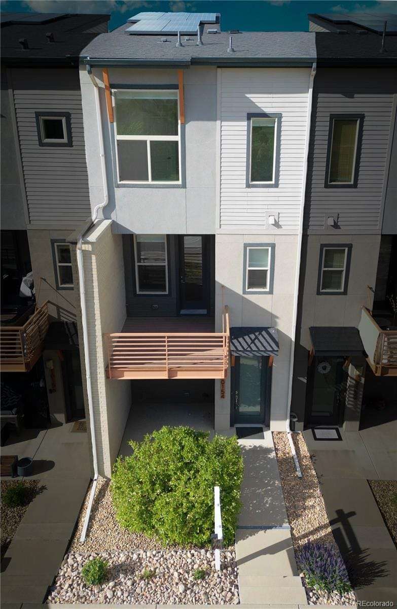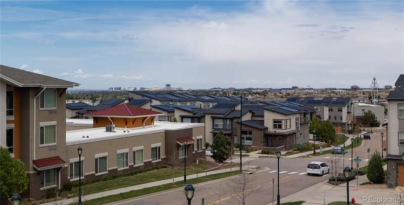 Lincoln Commons at Ridgegate! Beautifully maintained townhome with super-low HOA fees, pre-paid solar, updated high-speed internet through Quantum Fiber and incredible walkability to everything in Ridgegate. Ask me about financing concessions! The builder won Builder of the Year in 2017 for its innovative design and energy efficient features - including the pre-paid solar lease that runs through May 2036 with Tesla, formerly Solar City! Enjoy great views of the huge park and The Bluffs to the south and sparkling DTC area city lights to the north. The spacious kitchen features 42 upper cabinets, a pantry cabinet with roll-out shelving, upgraded stainless appliances with gas stove and granite countertops. The flexible dining area transitions into the adjacent living room where youll enjoy the southern views and access to a generous deck/balcony. The second floor is enhanced by engineered wood floors and the 3rd floor and stairways have brand new carpet. Upgraded roll-up shades throughout. The top level includes the primary bedroom with both a walk-in and a secondary closet plus a private en-suite bath. The guest bedroom also has a walk-in closet and a full bath with deep soaking tub. The main level offers a convenient laundry area with built-in cabinetry plus the HVAC closet housing the tankless hot water system. Youll also find a handy coat nook right by the garage entrance. The oversized, fully finished garage includes the solar control system and plenty of space for storage. The unbeatable location is close to great shopping, restaurants, the Lone Tree Arts Center, the library, South Suburban Rec Center, the great trails of Lone Tree, coffee houses, SkyRidge Hospital, major businesses and access to Light Rail. Make this your next home today!!!! Ask me about financing concessions!