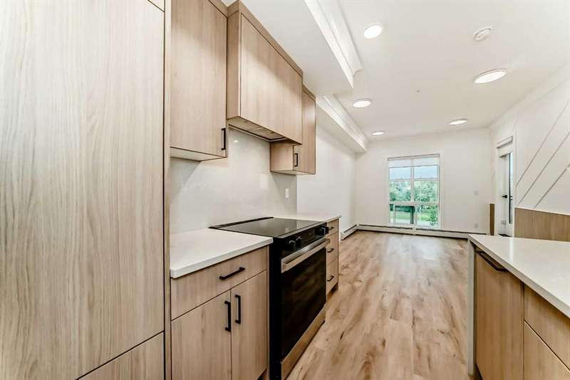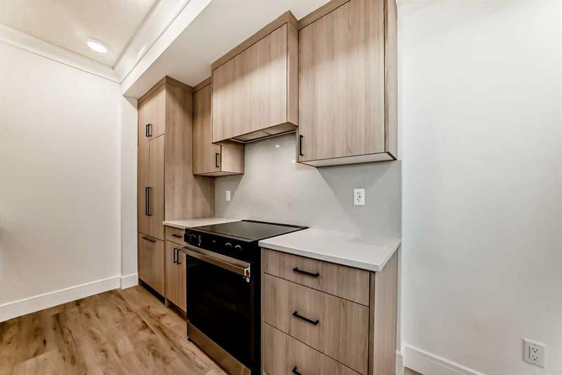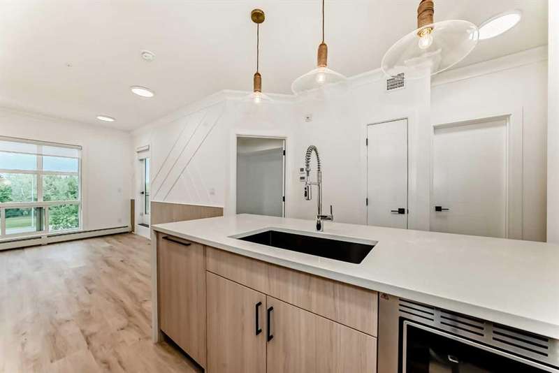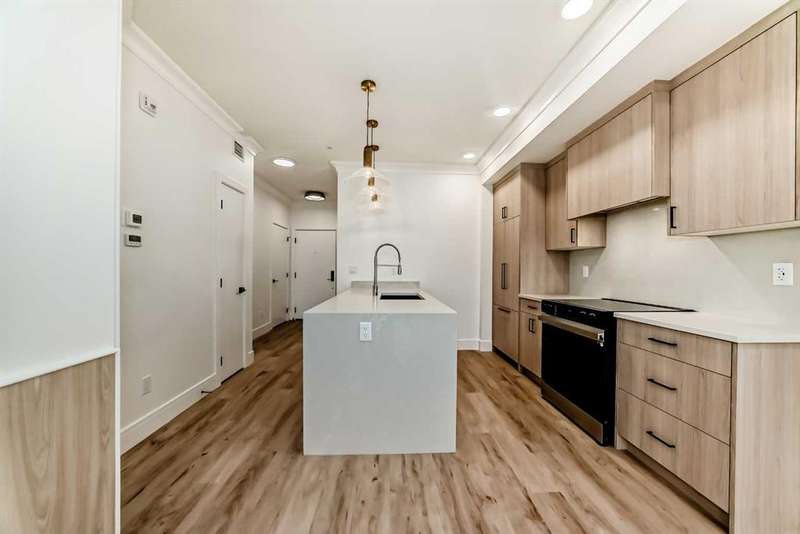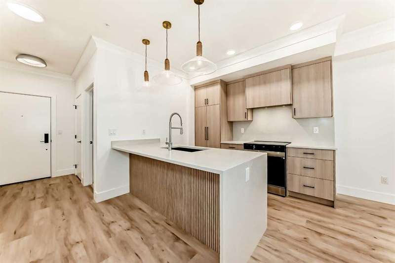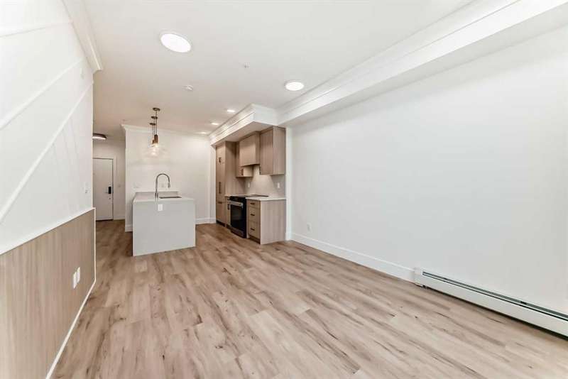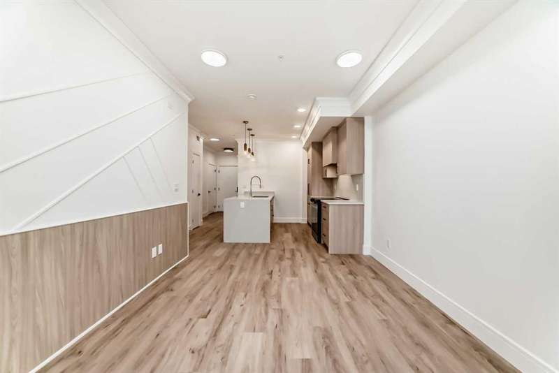 Step into elevated urban living with this brand-new 1 bedroom + den unit located in the highly sought-after University District. Designed with style, comfort, and functionality in mind, this 581.4 square feet home offers a perfect blend of modern finishes and timeless elegance. As you enter, you’re welcomed by a bright foyer that leads to a sleek kitchen featuring quartz countertops with overhang eating bar, a gorgeous kitchen island, panel-ready fridge, dishwasher and range, soft-close cabinetry, and high-end stainless steel appliances. The thoughtful layout includes a cozy dining area, a well-lit living room with big windows that flood the space with natural light, and a private balcony—perfect for your morning coffee or evening wind down. The primary bedroom boasts a walk-in closet and direct access to the 4-piece bath that showcases modern tile work, soft-close cabinets, and quality fixtures. The multi-purpose den offers flexibility for a home office, guest space, or creative studio. Enjoy the convenience of having your very own laundry room and additional perks include titled underground parking and storage, ensuring both security and peace of mind. Set within an amenity-rich, brand-new building, residents enjoy access to luxury features and common spaces. Living here means being part of the award-winning University District—a vibrant, walkable community where shops, dining, parks, green spaces, and walking paths are right outside your door. With quick access to the University of Calgary, Market Mall, Foothills Medical Centre, and downtown Calgary, everything you need is just minutes away. This home isn’t just move-in ready—it’s the perfect place to start your next chapter in style and comfort. Make it yours today!