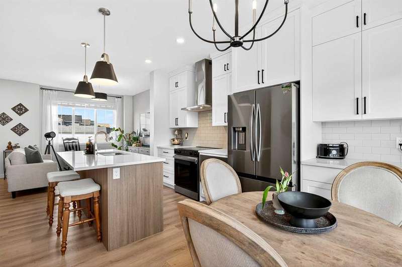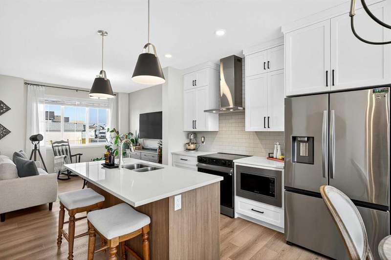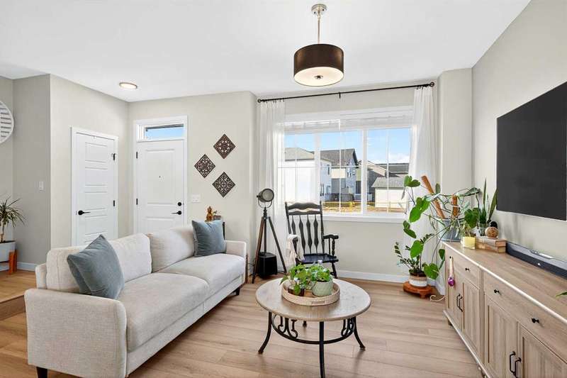 Want a new home without the hassle of finishing a basement or spending a fortune on landscaping? This one’s GORGEOUS AND READY for you! A lush, established lawn front and back sets the scene, and the SOUTH backyard gets ALL the sun—perfect for enjoying your adorable sunny deck. The extra-long lot offers plenty of play space, and a well-sized double garage keeps everything tucked away and your car snow free in winter! Inside, the bright living room will host your friends for a fun games night. kitchen shines with tons of soft-close drawers, stacked cabinets to the ceiling, and UPGRADED cabinets beside the fridge—the perfect coffee station or buffet with SIX extra cabinets for bonus storage! Laundry is smartly tucked away for convenience, and your guests will adore the stylish half bath with wallpaper and shelving. Upstairs, there’s NO CARPET UP HERE - LVP throughout. The spacious Primary Bedroom offers south-facing views and an ensuite retreat with HEATED FLOORS and a beautifully tiled bathtub/shower combo for soaking. Don’t miss the amazing Walk-In Closet with UPGRADED shelving/drawers and real personality! Two more well-sized bedrooms and a functional main bath complete this level. Downstairs, the cozy basement features upgraded carpet, a generous living area, bedroom, full bathroom, and storage. As for your new community - Want somewhere quieter where you can actually get to know your kids? Or are you looking for somewhere with more community and less traffic?? Just 16 kms from Airdrie - the Community of Vista Crossing in Crossfield has 160 acres of surrounding natural beauty, numerous parks, paths, a community centre, nearby schools and golf club. This area has so many cool amenities! Namely: Amery park is a great playground for kids of all ages, community garden overseen by the Crossfield Agricultural Society, huge public lawn, winter skating ring, community hearth and outdoor grills! You better make the quick drive out to see what life could be like in this GEM!