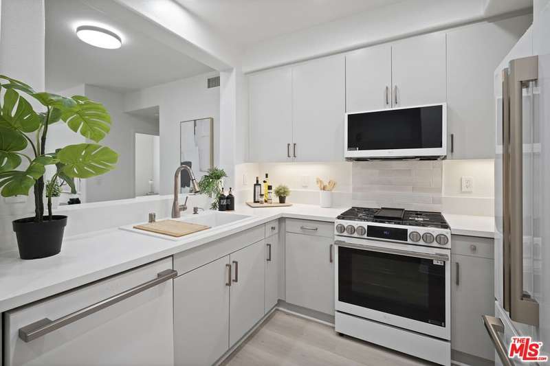 Welcome home to this beautifully updated Playa Vista 2 bed 2 bath with lush views of Ballona Discovery Park and bluffs. Airy open floor plan with a living area that leads to a covered balcony patio to enjoy the summer breezes. A 2025 dream kitchen impresses all with newly appointed Studio by LG luxury appliances, new quartz counters, new backsplash, newly updated light taupe cabinets with light bronze metallic hardware, and new chef's workstation sink with matching gooseneck faucet-perfect for aspiring home chefs. New white oak luxury vinyl plank flooring has been installed throughout the unit and the entire unit has been freshly painted offering new lighting , ceiling fans, NEST thermostat and more. The primary bedroom retreat offers a restorative space at the end of the day with an attached ensuite bathroom and large walk-in closet. The primary bath offers a double vanity with quartz counters, new hardware, a walk -in shower and deep soaking tub. On the opposite side of the unit, the 2nd bedroom also has it's own large walk-in closet. The 2nd bathroom offers a new vanity, new countertop, and hardware with a tub/shower combo. Located in one of the Westside's most walkable communities this home is near shopping, restaurants, dining, entertainment, hiking trails and more. Secured building with 2 parking spaces incl EV charger and storage locker. And not to forget, Playa Vista Resident amenities incl multiple pools, fitness centers, community gardens and resident only events. Call now to see your new updated and gorgeous Playa Vista home!