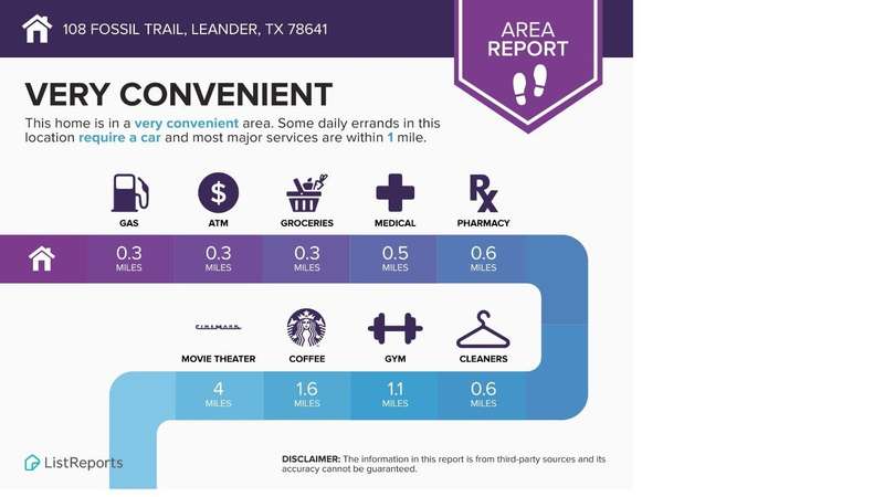 Welcome to your spacious dream retreat nestled in the heart of Leander. This 3380 square foot home has 5 bedrooms, 2.5 bathrooms and offers a perfect blend of modern comfort and timeless charm. Close to schools, shopping, and commuter rail. Entertainers Delight! Great open floor plan with plenty of space. 3 Living Areas, great gourmet island kitchen with tile back splash, lots of cabinet space and huge walk-in pantry. Stainless appliances. Wood stairs leading up to the game room. Down the hall is the owner's suite which is a sanctuary of relaxation with its generous space including a bedroom off it, a luxurious ensuite bathroom boasting dual vanities, a soaking tub, separate new shower, new tile, and a walk-in closet. Three additional bedrooms provide flexibility for guests, home offices, or hobbies, each offering abundant natural light and ample storage. Any carpet in the house has been replaced and never lived on. Brand new AC condenser as well! Step outside to discover a private backyard oasis, perfect for summer barbecues or morning coffee on the patio. Located in a family-friendly neighborhood, 108 Fossil Trail is conveniently situated near top-rated schools, parks, shopping, and dining options. With easy access to major highways, commuting to Austin or exploring the Texas Hill Country is a breeze. Don't miss the opportunity to make this home, with lots of great features, yours. Walk through the home online with the Matterport link. You will be amazed to know this single family residence is priced the lowest price per square foot in the area and 4th lowest in a 10 mile radius!!! Happy to help buy down your interest rate. Definitely priced to sell quickly and ready to move in now- great condition. Owner financing available.