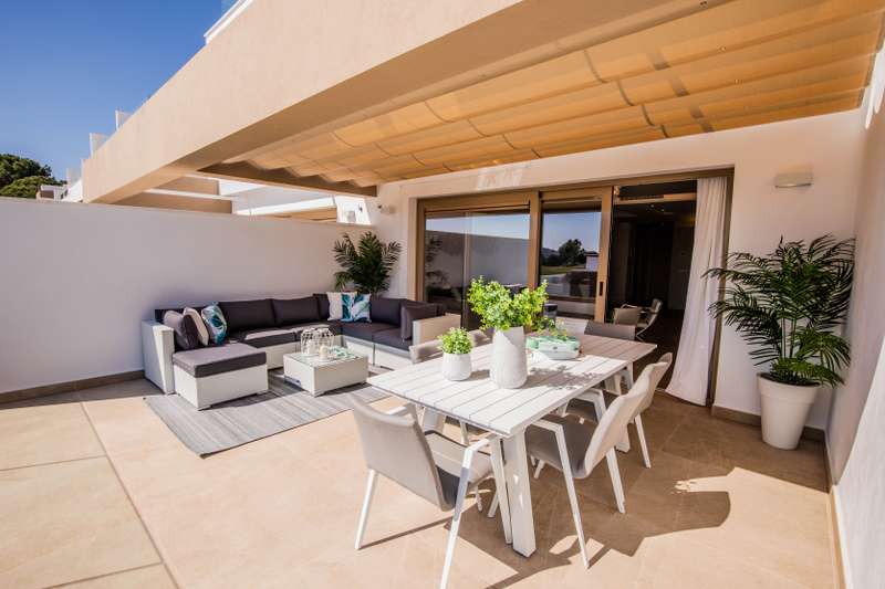 This beautiful unit is located in the gated community of 40 Town Houses and a large swimming pool. It has an open plan concept main floor with a fully equipped kitchen, bright and very spacious living room area, and entrance for your beautiful garden and open terrace. The first floor consists of 3 bedrooms with fitted wardrobes and two complete bathrooms, one of them being en-suite. On the roof, you have your private large solarium with amazing golf views and sunshine all day around. You can enter your private closed garage downstairs where you are able to fit 2 cars or even use the space to create something special like a cinema room or a craft workshop for example. Property owners in La Cala Resort will have their own Privilege Card to enjoy all sports and leisure facilities with special rates.