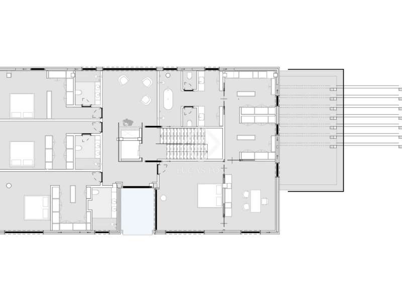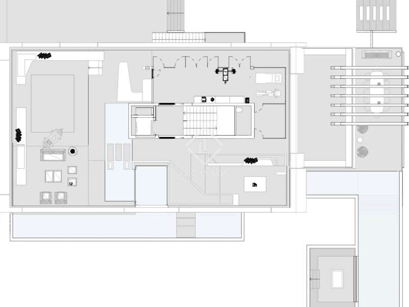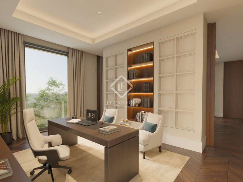 This stunning detached villa stands out for its avant-garde and unique style, integrating water as the main element through waterfalls, water features and a swimming pool, creating an atmosphere of serenity and privacy. Spread over two main floors and a basement, the property offers convenient access via elevator and stairs. The ground floor features glass walls that seamlessly blend the living room, dining room , and designer kitchen with the exterior garden . The first floor houses the 100 m² master suite with two dressing rooms, an study , and an en-suite bathroom , as well as three additional bedrooms, each with its own bathroom and dressing room. The rooftop terrace offers a chill-out space and a gym, initiating a visual journey that connects to the property's water features. The basement includes a guest bedroom with ensuite bathroom , a staff bedroom, a cinema room, a wellness area, a playroom, and a garage for at least six vehicles. The exterior offers a private garden with lush vegetation, a saltwater swimming pool, a solarium, and a porch with a dining area, creating an ideal setting for leisure and relaxation. This residence combines luxury, comfort, and privacy, making it an exceptional option for families or executives seeking a property with exclusive design, spacious rooms, and high-end finishes. Every detail has been carefully considered to offer comfort, functionality, and a unique living experience.