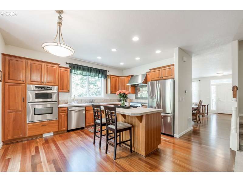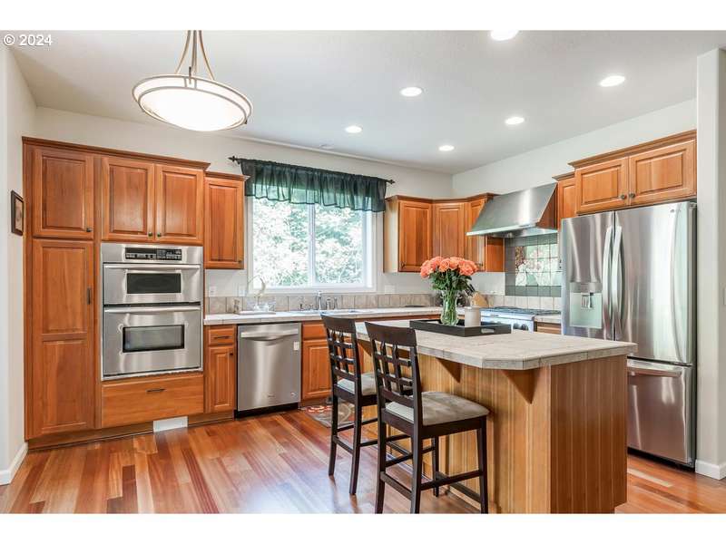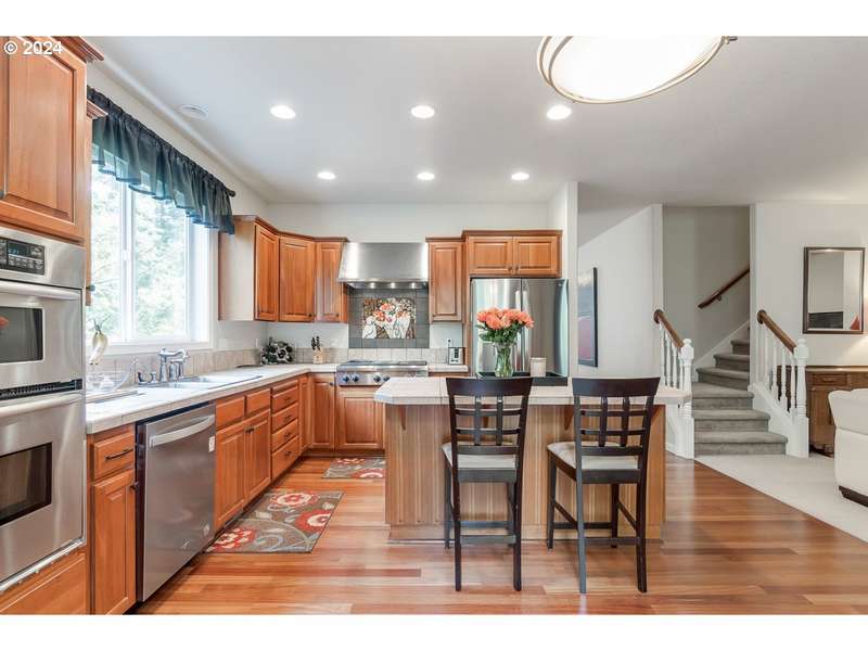 OPEN SUNDAY 09/07/2025 12 TO 1:30PM!Exceptional location featuring spacious home offering 4 bedrooms, 4 bathrooms, 2 bonus rooms, and an office, encompassing approximately 3,006 square feet of living space. The main level features newly refinished hardwood cherry floors (2021) and a gourmet kitchen equipped with stainless steel gas appliances, an eating island, and a double oven as well as a bedroom and full bathroom. The primary bedroom boasts vaulted ceilings, a walk-in closet, and a soaking tub. Recent updates include a new air conditioning system (2022) and a new roof (2023) new roof has transferable warranty, The family and living rooms each have a gas fireplace, providing cozy spaces for relaxation. Great for a multigenerational home. Located in the school districts of Mountainside High School, Conestoga Middle School, and Scholls Heights Elementary and short distance to popular progress ridge, restaurants, shopping, movie theater and parks.