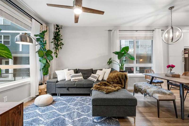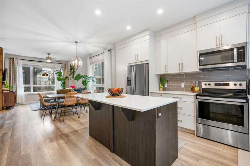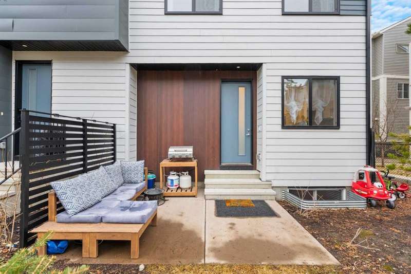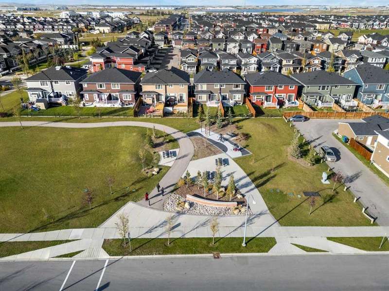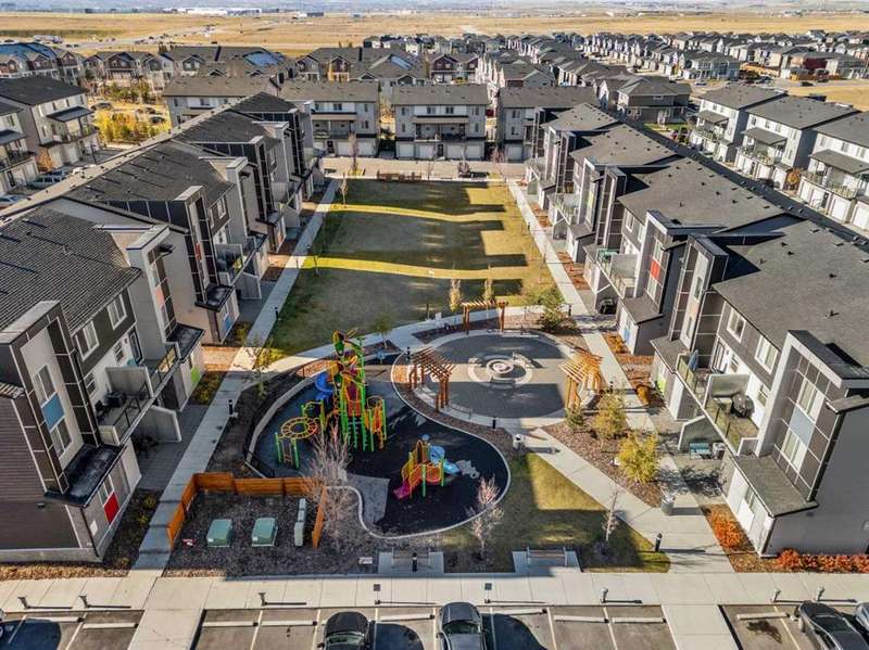 Welcome to 716 Redstone Crescent. This home comes with RARE 2-parking spaces. This beautifully maintained end unit townhome at Arrive At Redstone Way shows a bright Open Concept Layout. The main floor features large windows which allows great amount of natural light to the living room and dining area. The kitchen screams modern vibe with white cabinets, quartz counter tops and stainless steel appliances. The second level offers a large Primary Bedroom with an ensuite bath. There are 2 additional good sized bedrooms and a shared bathroom. This home offers a total of 3 Beds and 2 1/2 Baths. The unfinished basement awaits your creativity. Rough ins are in place for future bathroom and frames are set for a future additional bedroom. Heading outdoors features a large backyard perfect for barbeque space. Redstone is conveniently located minutes away from Deerfoot Trail and Stoney Trail providing ease of access anywhere in the city. Your future home is within walking distance to parks, schools and shopping areas. Don't wait. Book Your Private Showing Now.