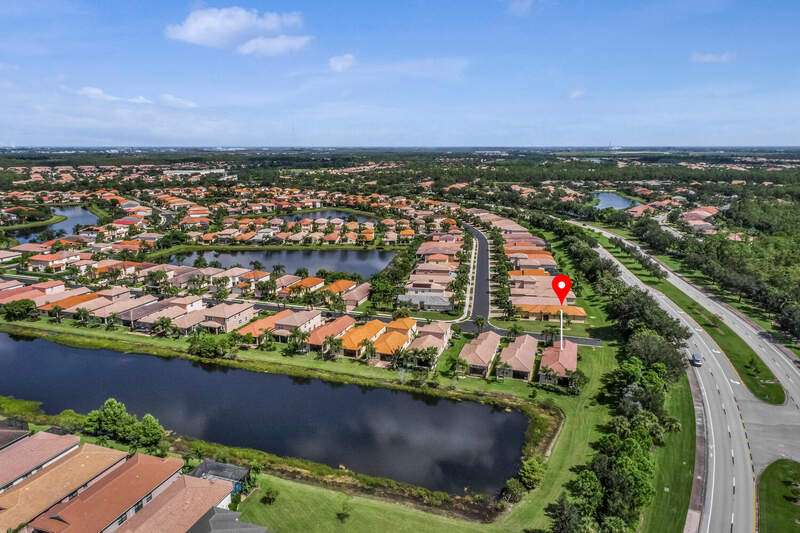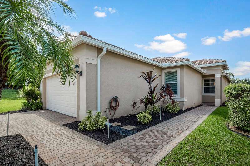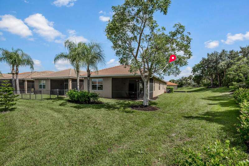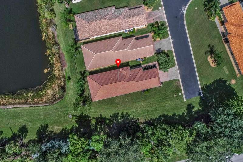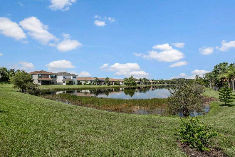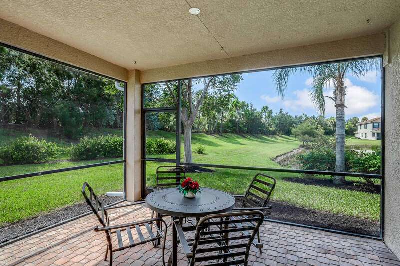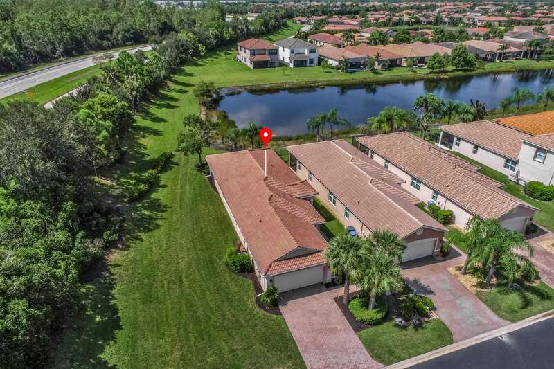 This 3 bedroom plus den home is perfectly positioned on an oversized lot at the end of Spruce Pine Ct., offering both privacy and space. Recent updates include a NEW ROOF and NEW A/C SYSTEM (both in 2025), providing peace of mind for years to come. The den features french doors, making it ideal for a home office, playroom, formal dining room (as seen) or flex space. Enjoy gorgeous landscaped and lakefront views with highly desirable southern exposure, filling the lanai with sunshine year-round. A unique side yard offers extra room for kids or pets to play, making this home truly stand out. Additional highlights include a whole-home gutter system, easy-care landscaping, and location in the X Flood Zone, meaning no flood insurance is required. HOA dues of $400/month cover lawn care, hedge trimming, irrigation checks, basic cable and internet, and ADT monitoring service! Amenities include the secure gated entrance and a recently renovated amenity center with fitness, tennis, pickleball, basketball, playground, kids' splash park, and a year-round activity calendar. Primary suite features dual walk-in closets and a spacious bathroom with dual sinks and shower with glass enclosure. Kitchen has wood cabinetry with SS appliances, granite countertops and a pantry closet. Offered furnished for convenience, with option to donate if not desired, this home combines peace of mind, ideal exposure, and maintenance-free living in one exceptional package.