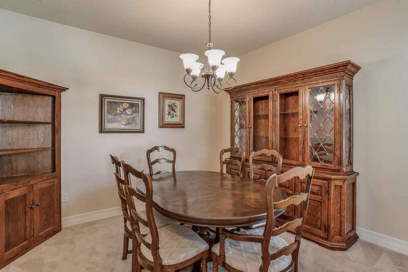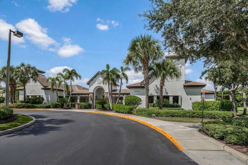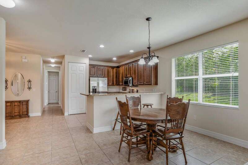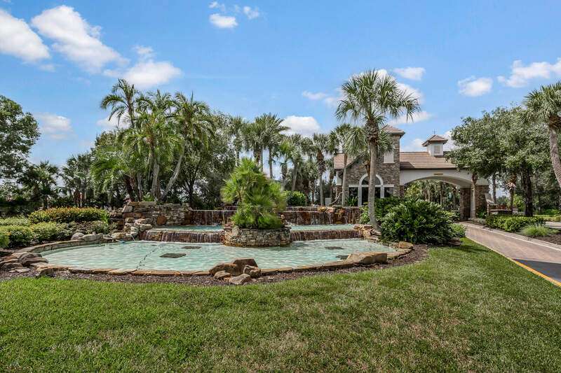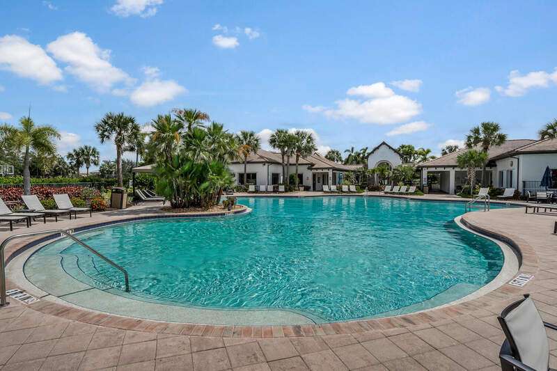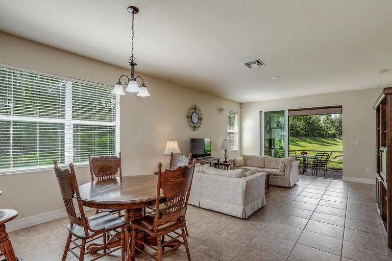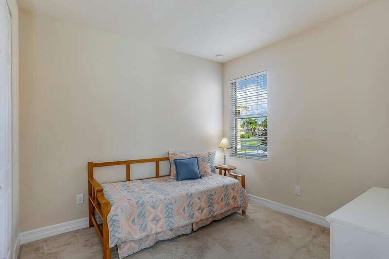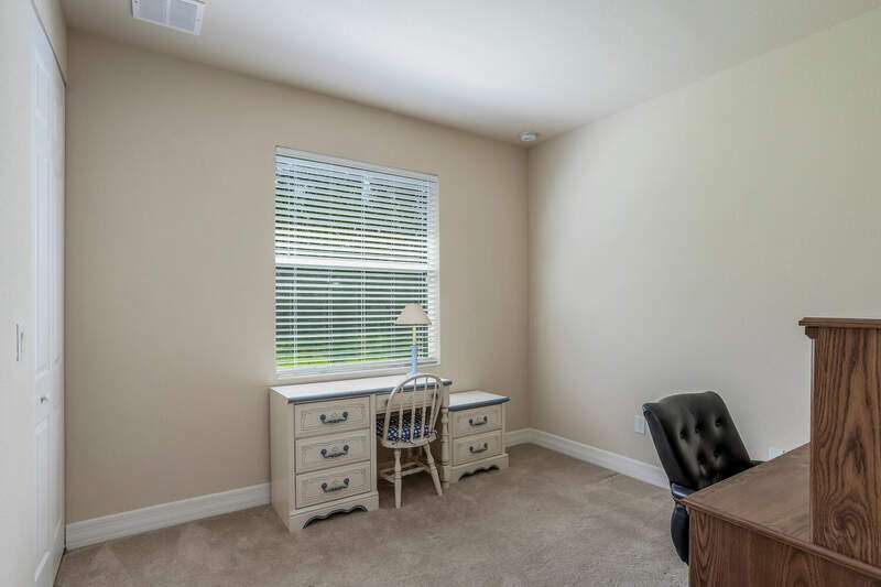 This 3 bedroom plus den home is perfectly positioned on an oversized lot at the end of Spruce Pine Ct., offering both privacy and space. Recent updates include a NEW ROOF and NEW A/C SYSTEM (both in 2025), providing peace of mind for years to come. The den features french doors, making it ideal for a home office, playroom, formal dining room (as seen) or flex space. Enjoy gorgeous landscaped and lakefront views with highly desirable southern exposure, filling the lanai with sunshine year-round. A unique side yard offers extra room for kids or pets to play, making this home truly stand out. Additional highlights include a whole-home gutter system, easy-care landscaping, and location in the X Flood Zone, meaning no flood insurance is required. HOA dues of $400/month cover lawn care, hedge trimming, irrigation checks, basic cable and internet, and ADT monitoring service! Amenities include the secure gated entrance and a recently renovated amenity center with fitness, tennis, pickleball, basketball, playground, kids' splash park, and a year-round activity calendar. Primary suite features dual walk-in closets and a spacious bathroom with dual sinks and shower with glass enclosure. Kitchen has wood cabinetry with SS appliances, granite countertops and a pantry closet. Offered furnished for convenience, with option to donate if not desired, this home combines peace of mind, ideal exposure, and maintenance-free living in one exceptional package.
