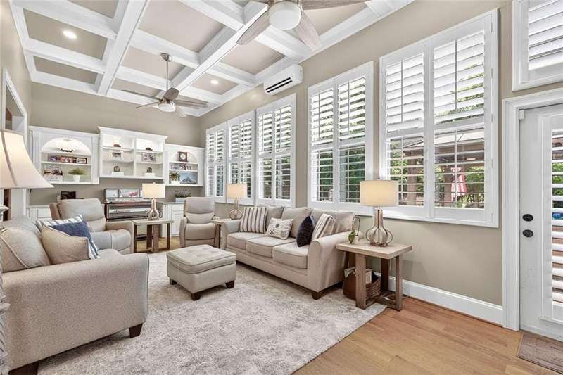 Welcome home to comfort, style, and convenience! Seller has invested over $100,000 in remodeling andyou will love the elegance and meticulous maintenance of this home in Brookhaven at Johns Creek, an award-winning Active Adult 55+ Community. This modified Ansley I floor plan is spacious and well-designed. Youll appreciate the many updates. MAIN LEVEL: New hardwoods throughout main level. Private OFFICE/STUDY offers great natural light overlooking the front porch. Elegant coffered ceiling and pocket doors. This office can double as a bedroom with the adjacent full bath. The open-concept floor plan connects the family room, dining area, and kitchen - wonderful for entertaining friends and family. LIVING ROOM features a gas fireplace flanked by built-in bookcases. KITCHEN has been wonderfully updated with creamy cabinetry and newer appliances: wine refrigerator, gas cooktop, microwave, refrigerator, dishwasher. Durable quartzite Taj Mahal countertops. Undercabinet task lighting. The DINING area is open and can comfortably seat eight guests. The LANAI has been remodeled to a heated/cooled SUNROOM with new windows, and built-in bookcases. The stacked stone fireplace makes this a cozy place for watching television, enjoying a good book, or chatting with friends. PRIMARY SUITE is very spacious and features a frameless walk-in shower, double-sink vanity with granite countertops, and a linen tower for all your essentials. Custom closet provides efficient storage. Walk-out from the main level to a private and tranquil oasis! Large flagstone patio, gazebo, and gorgeous landscape all combine to create a feeling of peace, privacy and well-being. UPSTAIRS: Another master/guest suite. This area is very versatile with a sitting room, sleeping area, cozy reading nook, TV/conversation area and a private full bath. Youll really appreciate the heated/cooled auxiliary room with sky light and built in cabinets. Perfect for an occasional bedroom or additional storage. Beyond the home, the community offers resort-like amenities: swimming pool, nature trail, lighted and newly resurfaced tennis court and (2) PICKLEBALL courts, community garden and Clubhouse. The Clubhouse features a fitness center, library, pool table, meeting space and two kitchens. Convenient to shopping, medical care, country clubs and restaurants. You will LOVE the lifestyle of ease and enjoyment offered with this home in this community.
