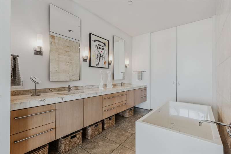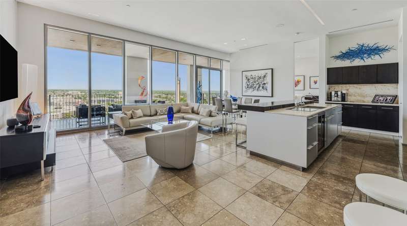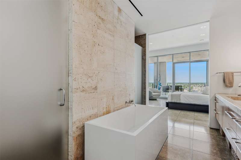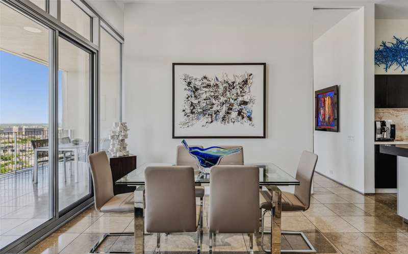 Located in the heart of the Dallas Arts District - recently named the Best Arts District in the country for the second year in a row! This sleek, modern condo at One Arts Plaza is a masterclass in contemporary elegance, bathed in natural light and perfectly designed to highlight your fine art collections. The kitchen features an expansive breakfast bar and seamlessly flows into the open living and dining areas. Step out onto the large, covered balcony from the kitchen, living area, or primary bedroom, creating a harmonious space for both indoor and outdoor entertaining. The primary suite is true retreat boasting a spacious bathroom and a generous walk-in closet. The versatile second bedroom, ideal for both work and rest, includes a thoughtfully integrated workspace and a convenient Murphy bed. Located in the vibrant Arts District, you'll be just moments away from The Winspear Opera House, Meyerson Symphony Center, Moody Performance Hall, the Dallas Black Dance Theatre, and Booker T. Washington High School for the Performing and Visual Arts.
