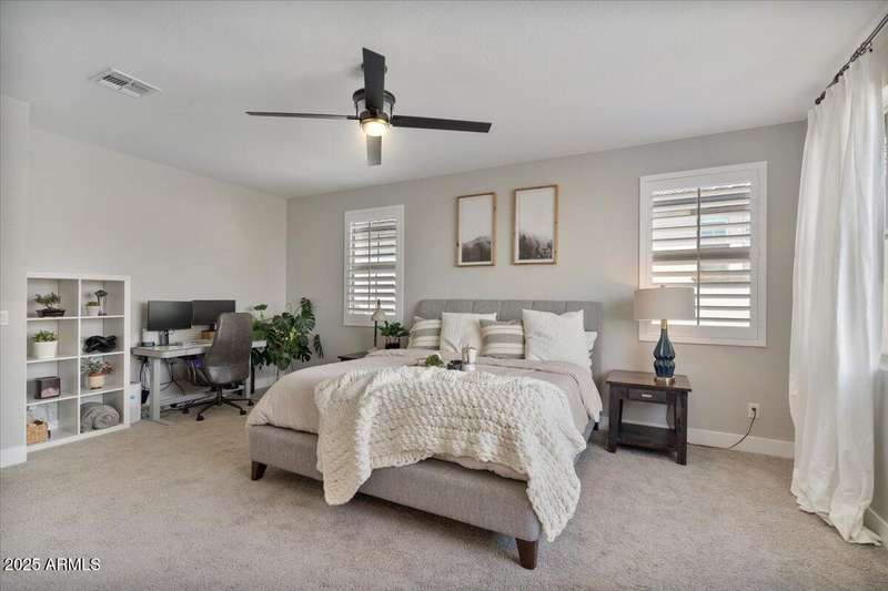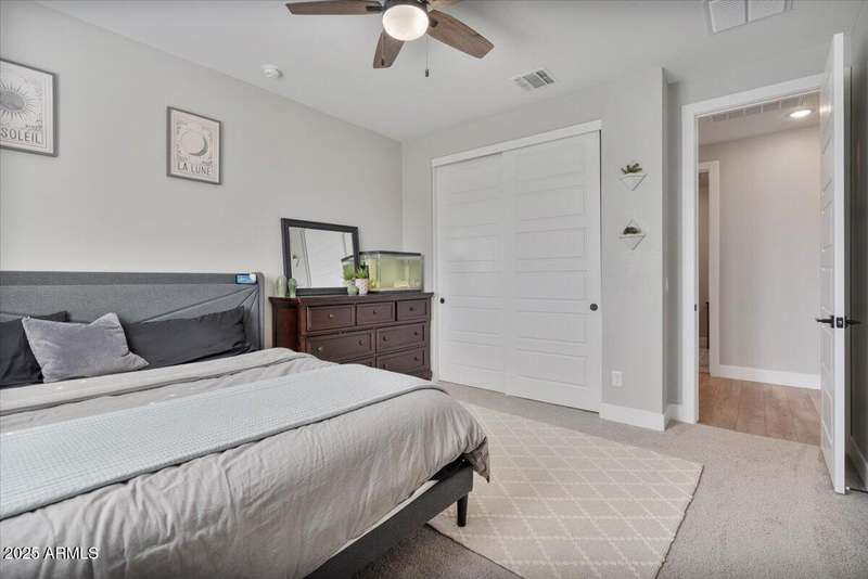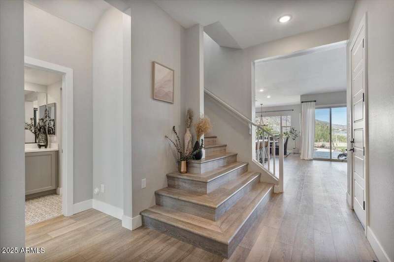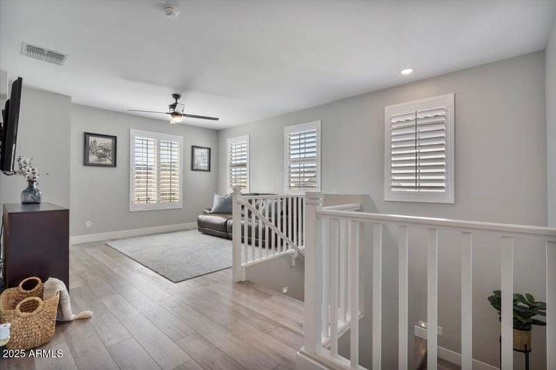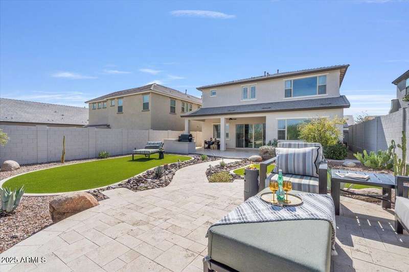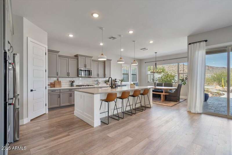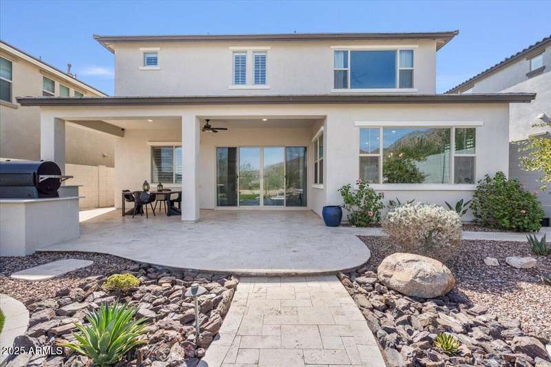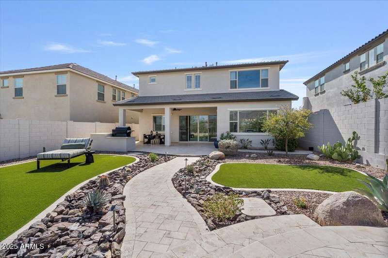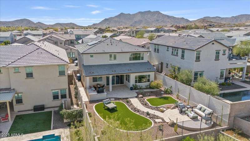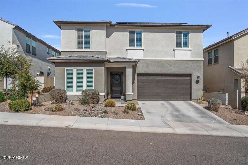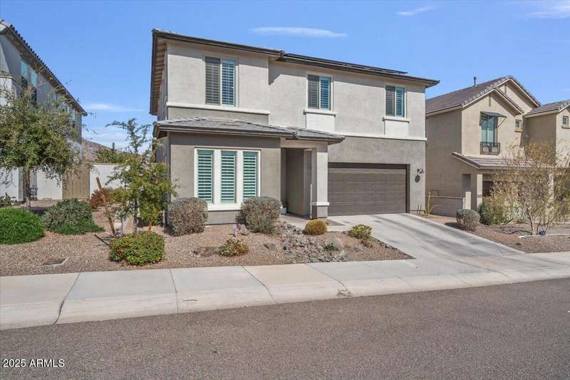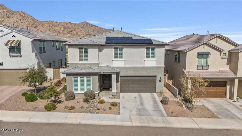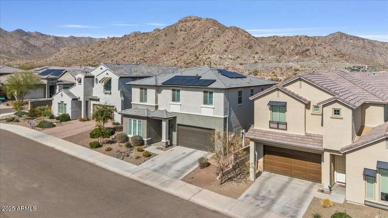 HUGE VALUE ALERT in Verrado Highlands! If you've been waiting for a late 2020-built home on a premium view lot inside a gated community, don't miss this opportunity. This 3,012 sq ft two-story is one of the best-priced newer homes in all of Verrado Highlands — and it shows beautifully with luxury vinyl plank flooring throughout the main level, a spacious loft, oversized kitchen island, modern finishes, and tons of natural light The backyard and upstairs bedrooms take full advantage of the mountain views and desert landscape behind the home — no neighbors staring into your windows. Sellers have moved out, the home is clean and ready, and paid-off solar will transfer at close of escrow (no lease or payments for the buyer). Gated, private, peaceful, and surrounded by nature trails