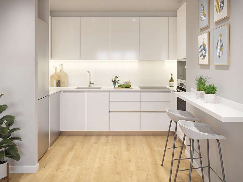 The apartments come with an open kitchen with built-in appliances, an en-suite bathroom, a balcony, and stylish finishes throughout.