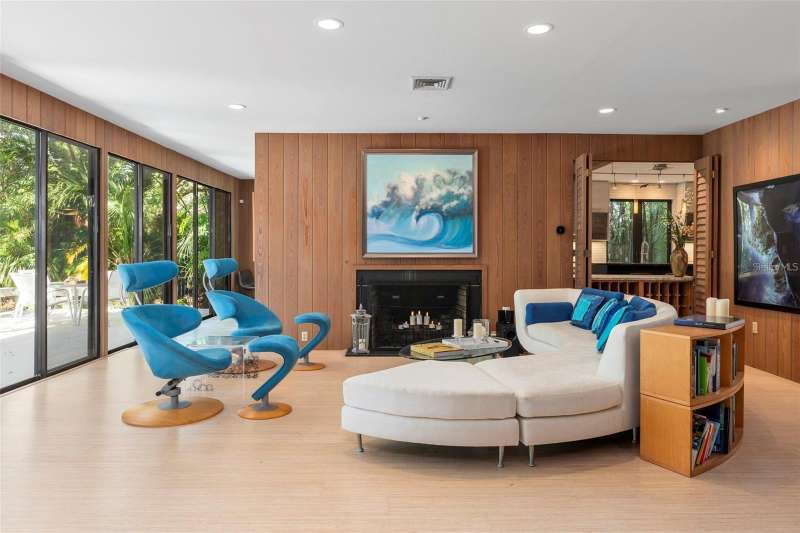 A Mid-Century Masterpiece Near the Beach & Village Discover this rare Mid-Century Modern gem, perfectly situated just moments from the beach and a short stroll to the shops and dining of Southside Village. Designed with timeless architecture and an enduring sense of style, this residence showcases dramatic cypress inside and out, blending warmth, character, and sophistication. Soaring ceilings and walls of glass bathe the interiors in natural light, creating a seamless connection to the lush surroundings. The expansive living room, anchored by a striking wood-burning fireplace, is both dramatic and inviting—an ideal setting for entertaining or quiet evenings at home. The open kitchen, designed for gathering, flows effortlessly to multiple outdoor patios and sitting areas. Upstairs, the private primary retreat offers a serene escape with its spacious bedroom, spa-inspired bath, and a dedicated laundry room for convenience. A second upstairs suite provides flexibility for family or guests. On the main level, an additional guest suite is complemented by a versatile bonus room—perfect as a home office, fitness space, or media room. Set on beautifully landscaped grounds with layered gardens and outdoor living areas, this home embodies the perfect balance of elegance and tranquility. Rarely does a property of such architectural significance and modern livability come to market.