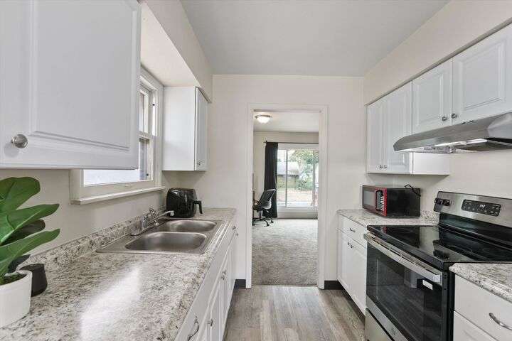 Updated Shadle Rancher with NEW Furnace, NEW AC and NEW Windows! This delightful home has many updates including paint, carpet, flooring, kitchen cabinetry, stainless steel appliances and bathroom vanity. NEW roof on the oversized garage, too! Workshop, laundry, and storage space galore on the partially finished lower level offers lots of room to grow. Large covered rear patio overlooks a level, fenced backyard, and detached oversized 2 car garage that has alley access. BONUS plentiful off-street parking including room for your RV, boat or trailer. Don't miss out, go see this one today!