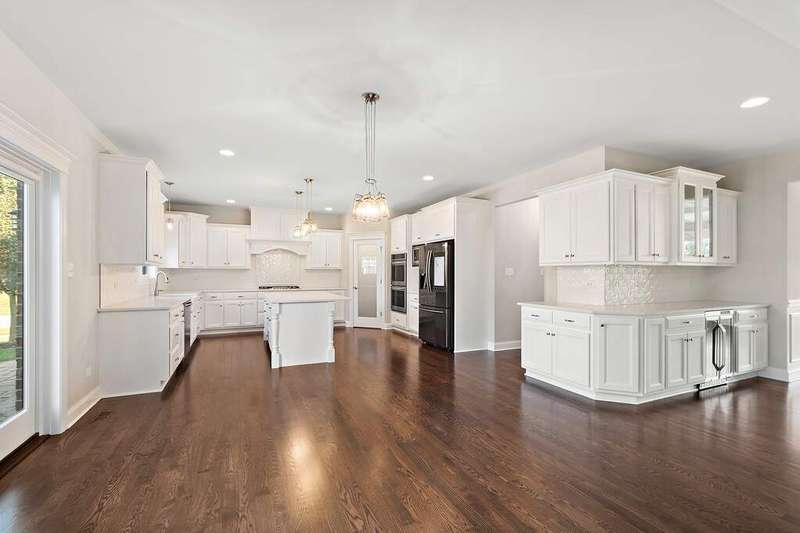 Better Than New Construction! This stunning home offers over 4,100 sq. ft. of finished living space with thoughtful design and luxury finishes throughout. The heart of the home features a chef's kitchen with custom Riverton cabinetry, quartz counters, and a spacious layout, seamlessly connecting to the dramatic two-story family room with soaring windows. Formal living and dining rooms provide elegant entertaining spaces, with the dining room highlighted by a coffered ceiling and wainscoting. A huge main-level office could easily serve as a 5th bedroom, with a full bath conveniently nearby. Upstairs, the jaw-dropping primary suite is a true retreat-complete with a spa-inspired bath and a bonus room with custom California Closets. Each bedroom includes a walk-in closet, and brand-new carpet adds a fresh feel. The mudroom/laundry off the 3-car garage is thoughtfully designed with cabinetry, stainless sink, and custom storage lockers. If you need more space, the 2,137 sq. ft. unfinished basement is already plumbed for a bathroom and ready for your personal touch. Flowing hardwood floors throughout the main level have recently been brought back to their original shine, making the home feel like new. Step outside to a professionally landscaped backyard oasis with a grand outdoor fireplace, built-in grill, expansive Unilock paver patio, and elegant landscape lighting that highlights the beauty of the outdoor space day and night. The corner lot backs to open space and a new park that includes a zip line, and just down the block you'll enjoy a half-mile paved trail circling the community pond. Located within walking distance to award-winning Hickory Creek Middle School (157C) and feeding into Lincoln-Way East High School, this home truly combines luxury, convenience, and lifestyle.