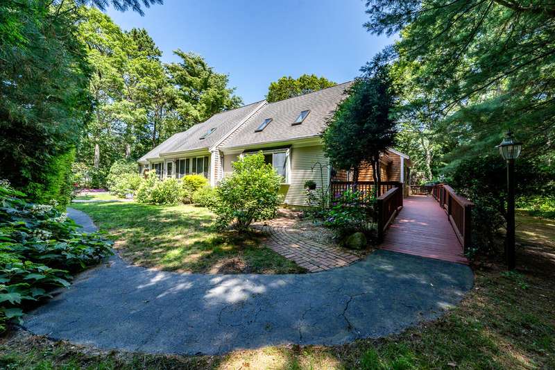 Centerville Sanctuary! The private driveway opens to this gracious estate home, on beautifully landscaped grounds. The home features a Cathedral Living Room flowing seamlessly into the Dining Room and the Chef's Kitchen (2022) with high-end appliances and Granite Countertops. The 1st floor Primary Suite (2001) is a private retreat with Gas Fireplace, separate Kitchenette & full-size Laundry, 2 Full Bathrooms, enormous Closet/Dressing Room. Adjacent to the Chef's Kitchen is a Home Office and a Full Bathroom. The wrap-around Deck features remote-controlled awnings and ramp for easy access. The 2nd floor offers an Xtra-large Bedroom with Laundry area, a 3rd Bedroom & another Full Bathroom. Lower level offers a Family Room/Media Room with A/C & Heat, as well as 2 Large Storage Areas. 9 mini-split heat pumps for A/C & Heat (4 new in 2019). Roof in 1999. Andersen Windows & 4 Sliders - 2001. 75 Gallon hot water heater - 2010. Gutter shield. 2019: Garage Door & Opener, 8-zone Irrigation.