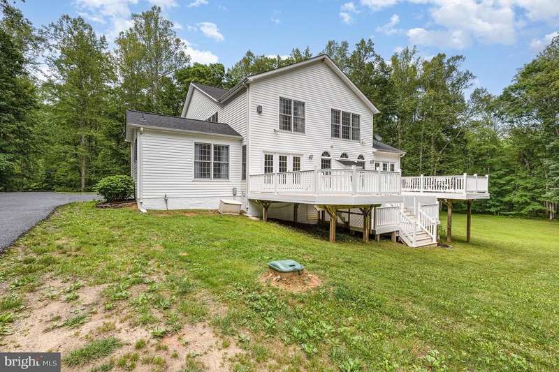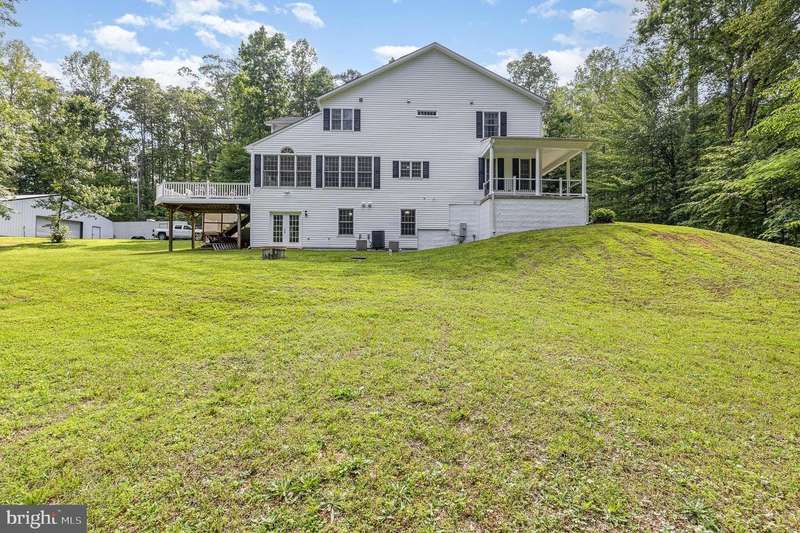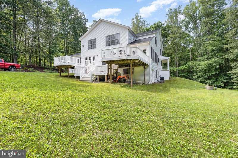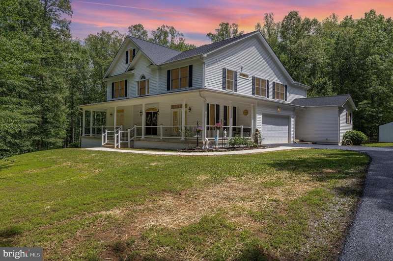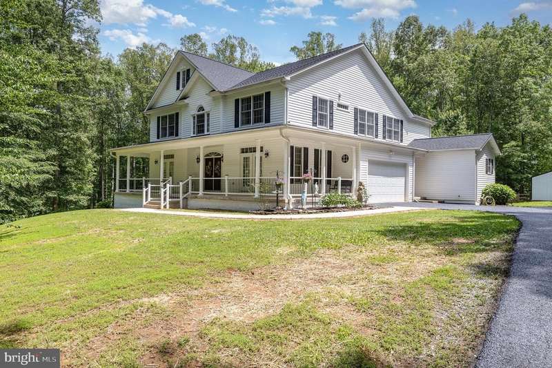 Your private & peaceful retreat nestled on 11.4 acres of pristine land is waiting for you! This spacious and updated home offers the perfect blend of modern comfort and timeless country charm. Step onto the expansive, country-style front porch, ideal for enjoying your morning coffee with serene views. Inside, the open entryway welcomes you with a grand staircase and gleaming hardwood floors throughout the main level. The heart of the home-your updated kitchen-features brand-new quartz countertops, custom tile backsplash, and an eat-in dining nook surrounded by large, sun-drenched windows. Unwind in the cozy living room with a gas fireplace, arched windows, and elegant columns, or entertain guests across the formal living and dining rooms-each with atrium doors that open to the front or back porch. The main level also includes a bedroom with full bath, perfect for guests or multigenerational living, plus a dedicated home office. Enjoy summer gatherings on the 3-tier deck overlooking your fenced-in backyard. Upstairs, you'll find 3 generously sized bedrooms plus 2 other rooms with brand-new carpet, a spacious loft, and a luxurious primary suite with a fireplace, spa-like bathroom, and dual walk-in closets. The fully finished walk-out basement offers even more versatility, complete with a full bath, flexible living areas, and ample storage. Car enthusiasts and hobbyists will love the 48'x40' detached garage/workshop with a car lift, plus a 2-car attached garage. A new roof (2024) adds peace of mind. Just under an hour from Washington, D.C. Don't miss your chance to own this haven! Don't miss your chance to own this haven!
