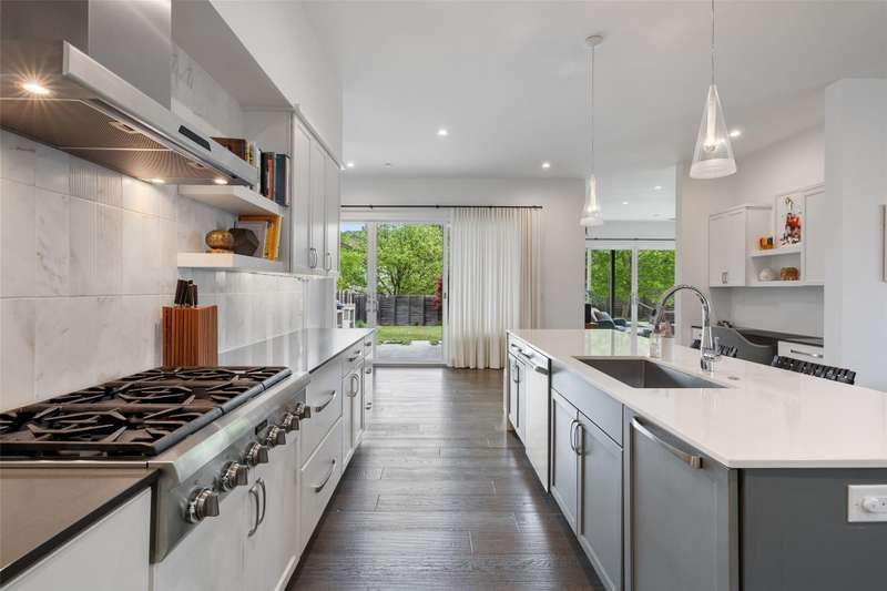 Modern Sophistication Meets Transitional Living in 78704! Welcome to 2500 Cedarview Drive, a meticulously crafted 4-bedroom, 3-bath home that blends soft modern architecture with energy-efficient upgrades. Located in the coveted Barton Hills neighborhood of Central Austin, this home offers the perfect mix of urban convenience, natural beauty, and laid-back charm. Built in 2016 by Strut Design+Build and designed by the late architect Cass Cheesar, this 3,147-square-foot residence spans two levels of refined living. An open-concept layout and abundant natural light create a bright, airy atmosphere ideal for everyday life and entertaining. Positioned on a corner lot with a side-entry garage, the home delivers both privacy and curb appeal. The gourmet kitchen is a chef's dream with high-end Thermador appliances, a large island with bar seating, and a walk-in pantry. It connects seamlessly to the dining and living areas--perfect for hosting or relaxing with family. Sliding doors lead to a covered patio and beautifully landscaped backyard, offering a peaceful retreat. The luxurious first-floor primary suite includes a spa-like bathroom with walk-in shower, double vanity, and spacious walk-in closet. A second bedroom or office on the main level adds flexibility. Upstairs, two more bedrooms, a full bath, and a second living area offer additional comfort and privacy. Upgrades include a 10kW solar system, two battery packs, and a Wallbox Smart EV charger. The garage features epoxy floors, custom shelving, bike racks, and a smart "SPAN" electrical panel. The backyard boasts mature landscaping--including a red oak and Japanese maples--a rock walkway, cement paver path, cozy deck, and grilling area. An extended side fence enhances privacy. With quality construction, modern design, and eco-conscious features, this exceptional home offers elevated living in one of Austin's most desirable neighborhoods--just minutes from downtown, Zilker Park, Barton Creek Greenbelt, and South Lamar.