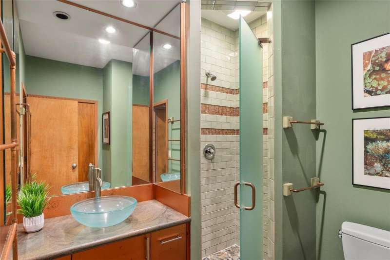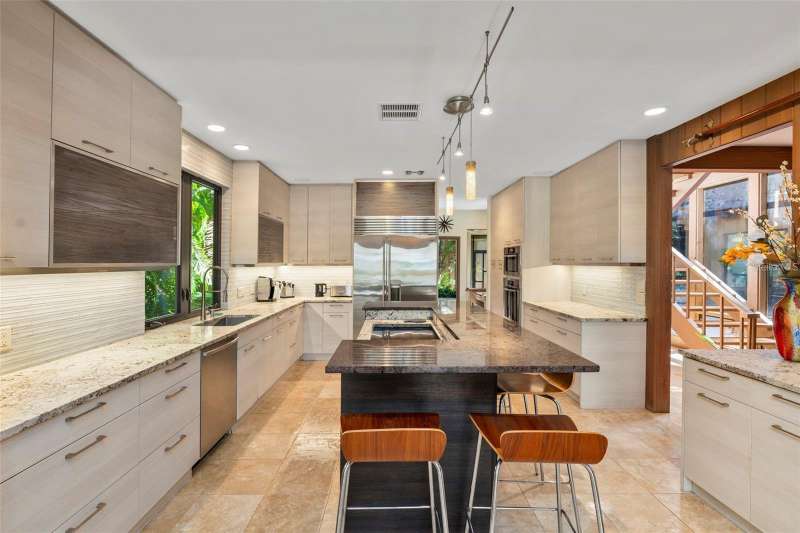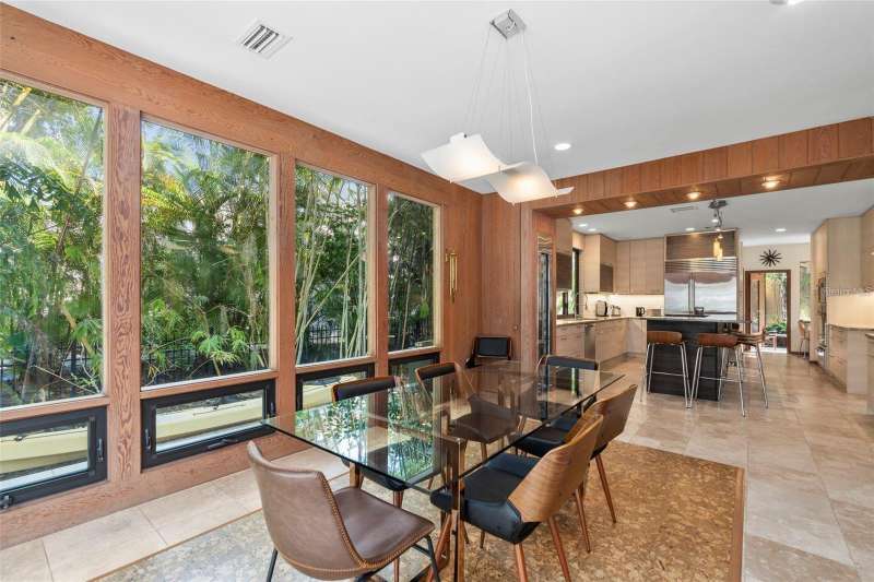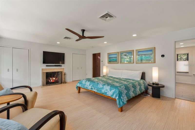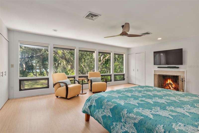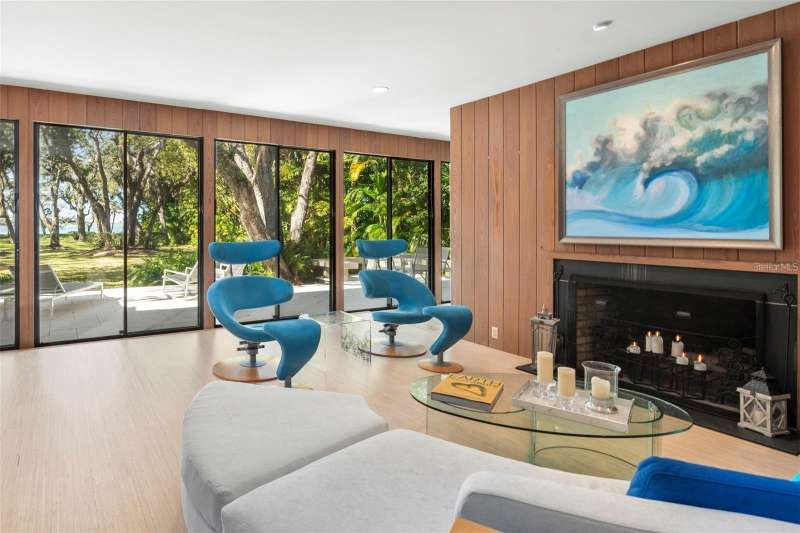 A Mid-Century Masterpiece Near the Beach & Village Discover this rare Mid-Century Modern gem, perfectly situated just moments from the beach and a short stroll to the shops and dining of Southside Village. Designed with timeless architecture and an enduring sense of style, this residence showcases dramatic cypress inside and out, blending warmth, character, and sophistication. Soaring ceilings and walls of glass bathe the interiors in natural light, creating a seamless connection to the lush surroundings. The expansive living room, anchored by a striking wood-burning fireplace, is both dramatic and inviting—an ideal setting for entertaining or quiet evenings at home. The open kitchen, designed for gathering, flows effortlessly to multiple outdoor patios and sitting areas. Upstairs, the private primary retreat offers a serene escape with its spacious bedroom, spa-inspired bath, and a dedicated laundry room for convenience. A second upstairs suite provides flexibility for family or guests. On the main level, an additional guest suite is complemented by a versatile bonus room—perfect as a home office, fitness space, or media room. Set on beautifully landscaped grounds with layered gardens and outdoor living areas, this home embodies the perfect balance of elegance and tranquility. Rarely does a property of such architectural significance and modern livability come to market.