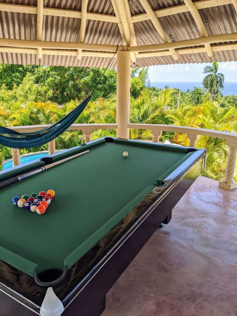 Enjoy the breeze from the porch, explore the fruit trees, cool off in the splash pool, or have a game of pool, darts, or dominoes in the gazebo. The Cabrera Forever Home has an open floor plan of approximately 2.000 square feet with beautiful views of the ocean. The front-facing windows draw you immediately and the invitation to sit on the porch rockers should not be ignored. After that, you will also enjoy a large back patio, a gazebo (pool table, hammock, dart board, and domino table), and a splash pool.