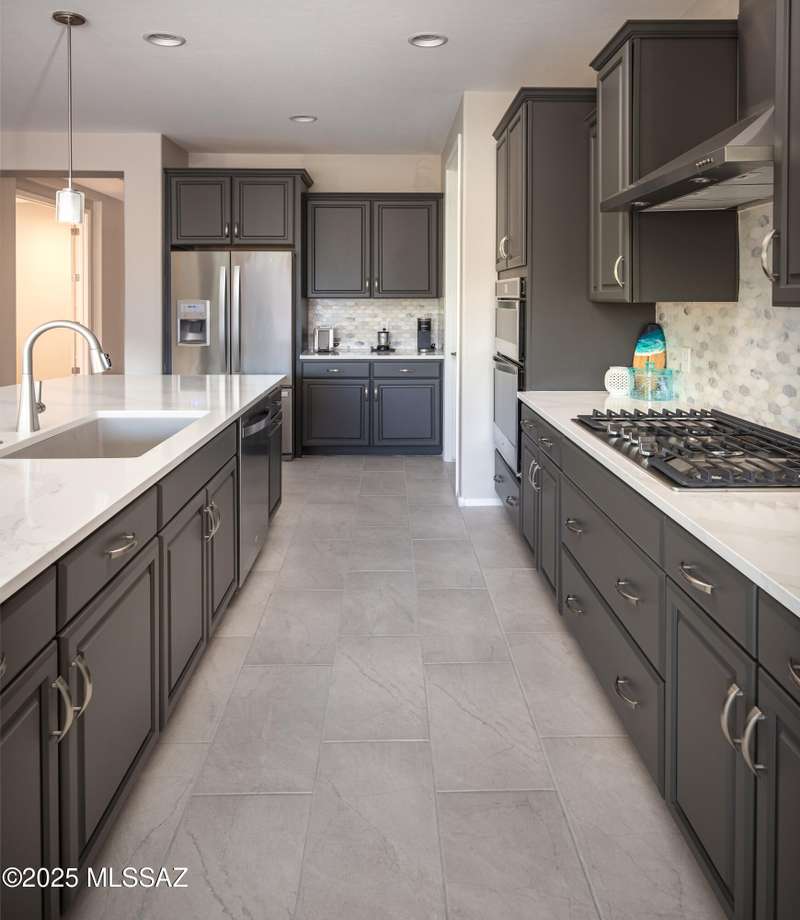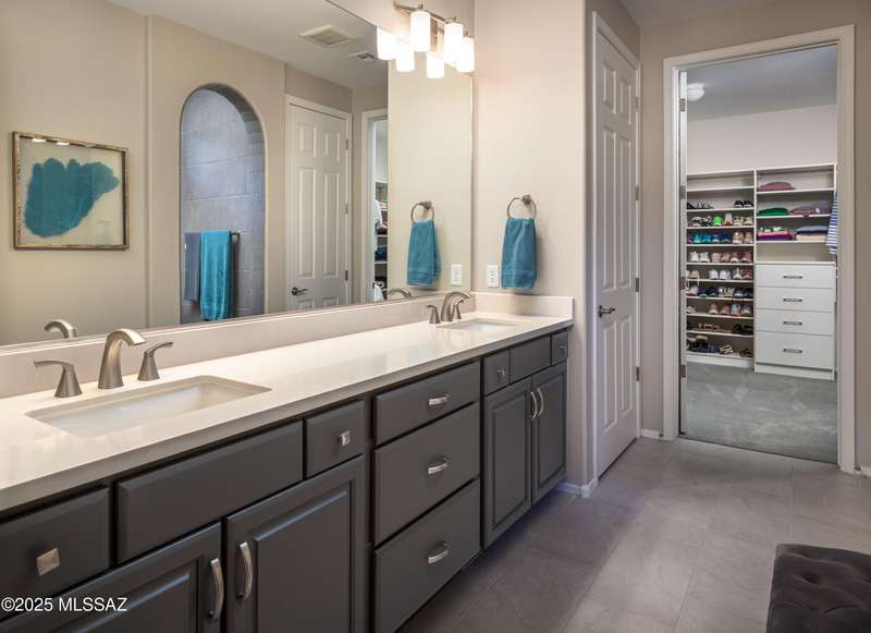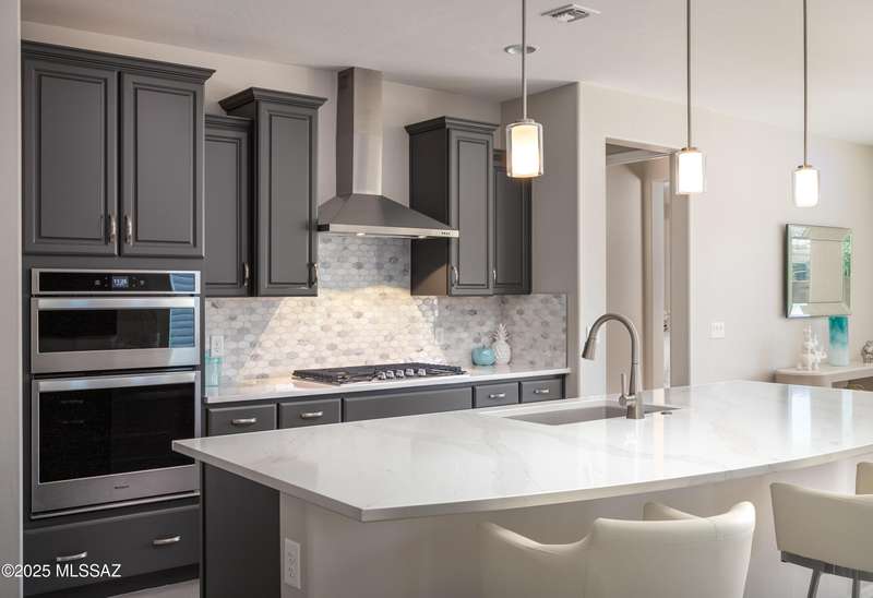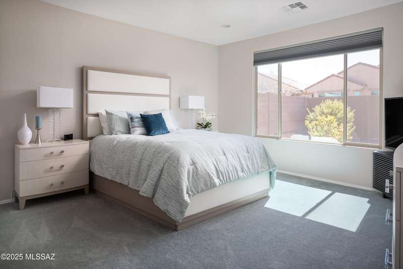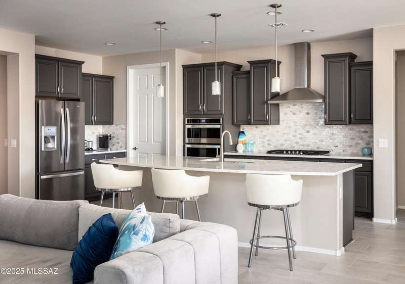 This lovely 2BD/2BA/Den Preserve Model home has been lightly lived in and well maintained. A custom screen-door greets you at the entry leading to an open-concept floorplan. The kitchen area features quartz counters, island/breakfast bar, SS appliances, walk-in pantry, dining area and relaxing great room. A wall of windows shares the covered patio with fireplace, professionally landscaped backyard, seating area w/ mountain views and gas stub for BBQ. The beautiful primary suite w/custom closet is located in the rear of the home overlooking the backyard. The second bedroom/bath are located in the front of the home, along with a large double-door den. Laundry room w/storage and optional sink stub-outs leads to the 2.5-car garage equipped w/water softener and room for a Golf Cart or storage.