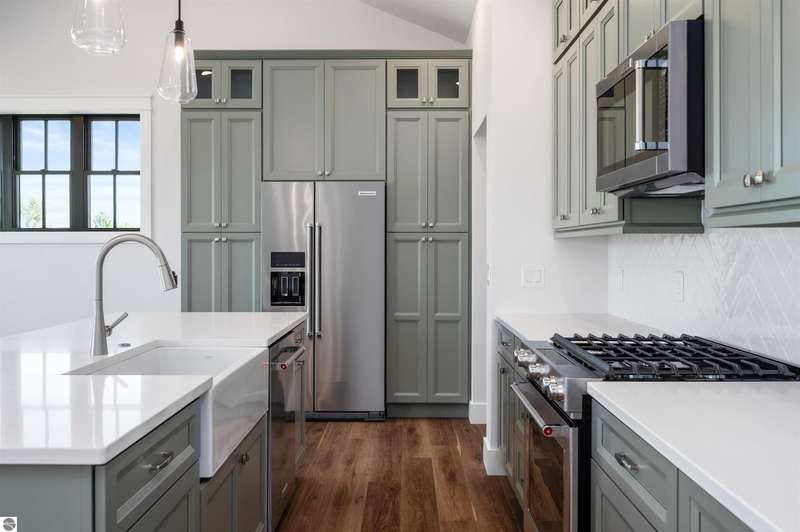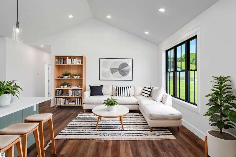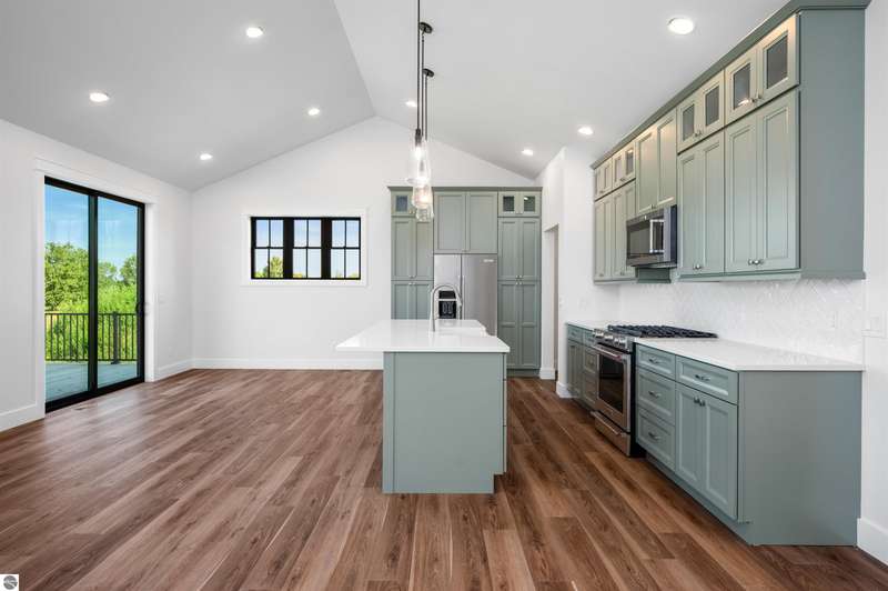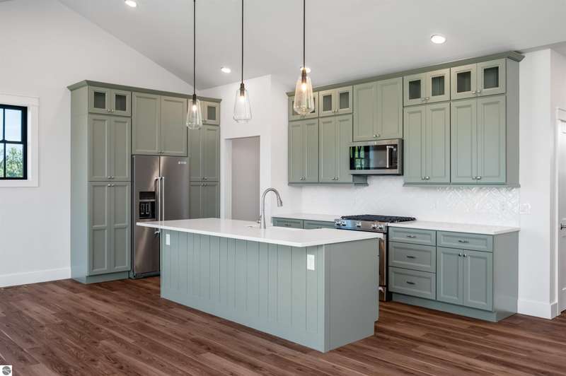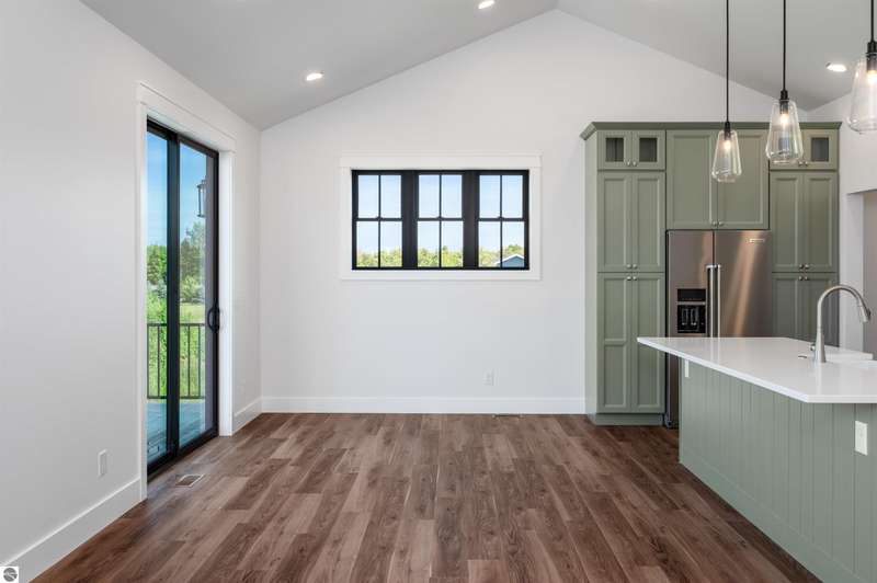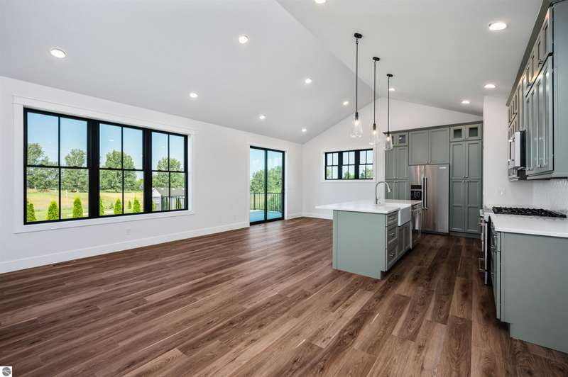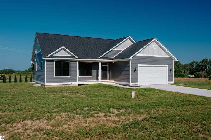 Modern design, upscale finishes, and a layout that just makes sense. This brand-new home blends style and function effortlessly. From the LP Smartside siding and black window package to the covered front porch, every detail was thoughtfully chosen. Inside, you'll find vaulted ceilings, solid core doors, and central air for year-round comfort. The open layout flows from a custom kitchen--complete with premium cabinetry, KitchenAid appliances, and a spacious island--into bright dining and living areas with Shaw luxury vinyl plank flooring throughout. The private primary suite includes a sleek en-suite bath with custom tile work and a walk-in shower. A finished 24' x 24' insulated garage adds convenience, and the full lower level with two egress windows is ready for future expansion. Enjoy a quiet backyard setting on just shy of a 1/2 acre minutes from downtown Traverse City and Kingsley. Clean, stylish, and move-in ready. This one nails it.