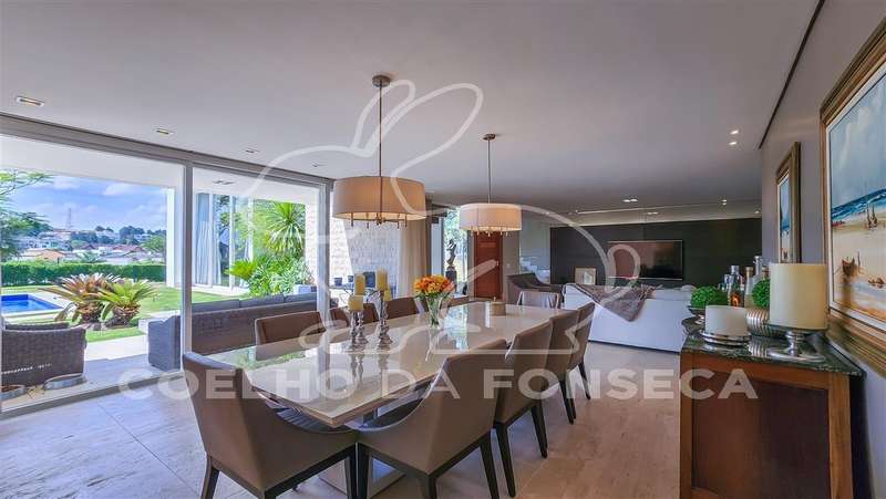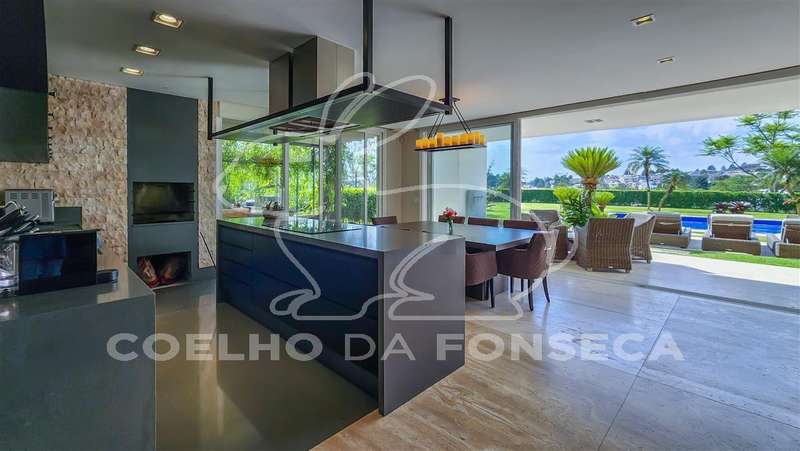 Casa em Condomínio no bairro Aldeia da Serra com 653m² área construída, 5 dormitório(s), 5 suíte(s), 3 vaga(s), 5 banheiro(s), piscina, gerador, escritório, depósito, ar condicionado, dep. de empregados, varanda, aquecedor solar, pé direito duplo.