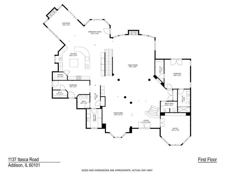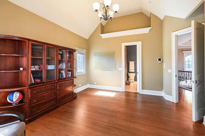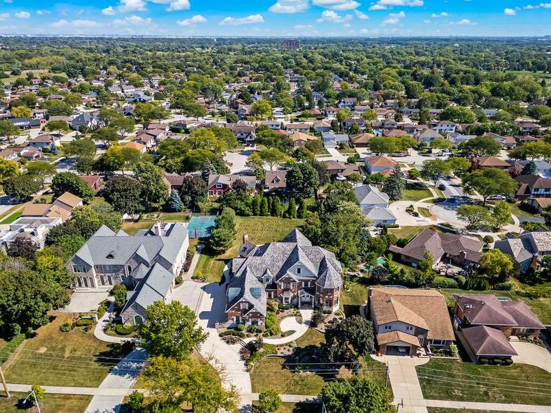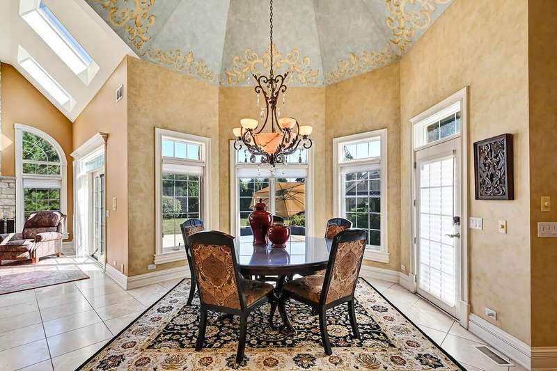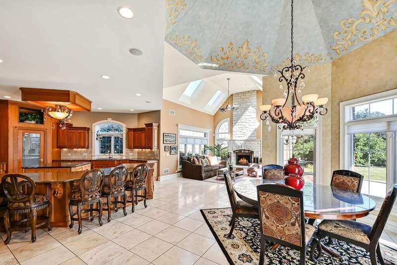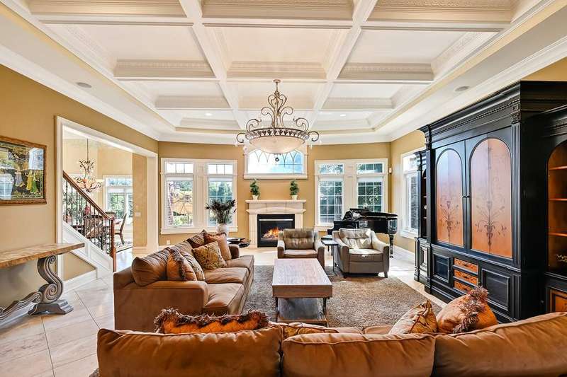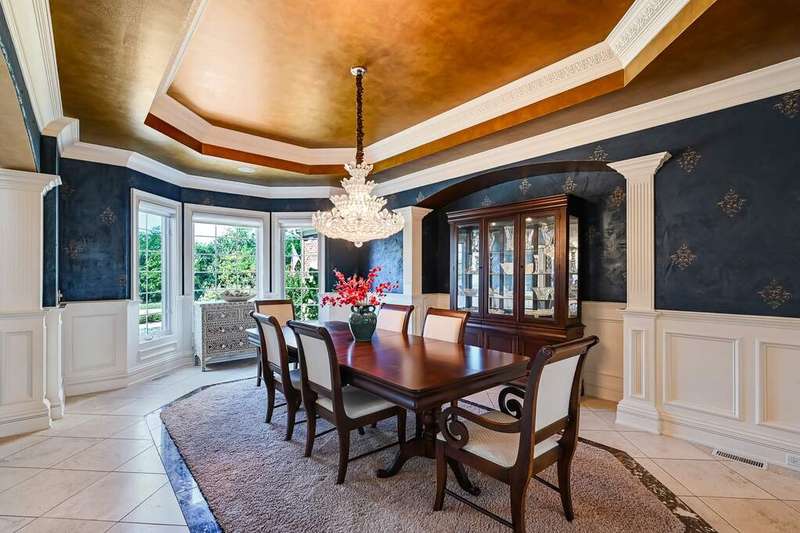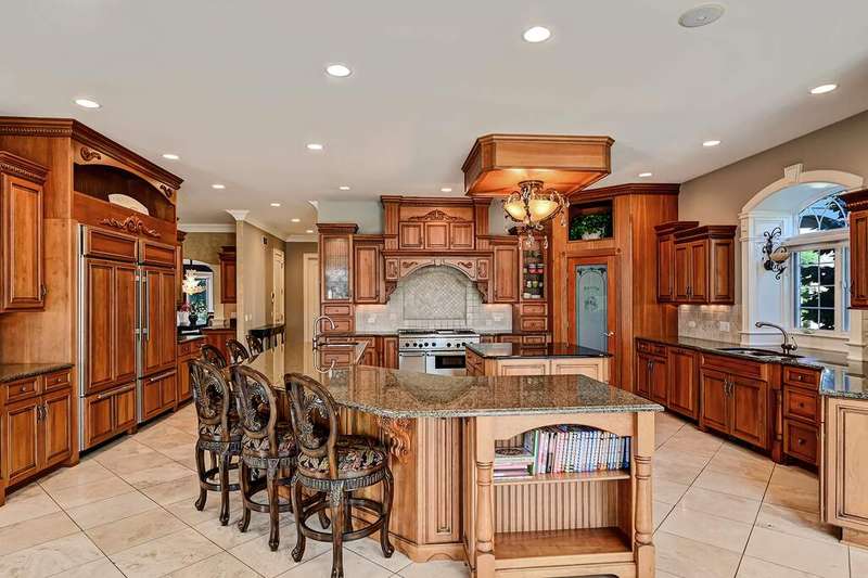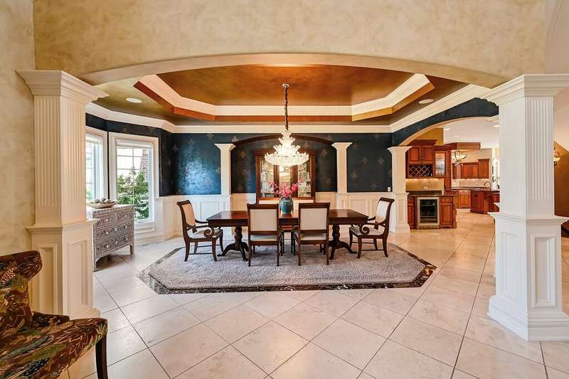 This SeBern custom built home is designed to impress, both in scale and appointments. Filled with abundant natural light, each expansive room is designed to accommodate both lavish entertaining and comfortable family living. This residence offers a thoughtfully crafted floor plan, elegant formal living and dining spaces, and seamless transitions to outdoor patios ideal for gatherings or quiet retreats. Professionally landscaped grounds and lush gardens, water feature, outdoor kitchen and entertainment pavilion, add to this majestic home which encompasses approximately two thirds (2/3) of an acre. Highlights include: five bedrooms (5) ensuite,(including 1st floor bedroom), full finished basement comprising almost 9,000 square feet of living space, two (2) laundry rooms, plus a four-car (4) attached garage with Tesla charger. Step into timeless elegance the moment you enter this residence, where a limestone foyer, dramatic spiral staircase, and hand-painted tray ceiling create an unforgettable first impression. The main level is designed for both sophistication and comfort. A richly appointed office with wood paneling, coffered ceiling, and French doors provides the perfect retreat, while the formal dining room dazzles with a gold tray ceiling, custom millwork, and an adjacent bar with wine storage. The sunlit great room offers soaring coffered ceilings, a limestone fireplace, and floor-to-ceiling windows, seamlessly blending grandeur with warmth. At the heart of the home, the chef's kitchen is a showpiece. Dual islands provide prep and gathering space, while custom cabinetry, granite countertops, and professional-grade appliances - including a Thermador range with dual ovens and dual Subzero refrigerators - elevate every culinary experience. A vaulted breakfast room opens to the backyard, while the adjoining sunroom with a stone fireplace and skylights invites year-round enjoyment. Additional main-level conveniences include a custom mudroom with built-ins, a full laundry room, and two stylish powder rooms. A private in-law suite with patio access and spa-inspired bath ensures comfort for extended family or guests. Upstairs, four spacious en-suite bedrooms feature tray ceilings, walk-in closets, and luxury finishes. The primary suite is a retreat of its own, with a marble-surround fireplace, private exercise room, and a custom dressing room. The spa-like bath offers dual vanities, a Jacuzzi tub framed by columns, heated limestone floors, and an oversized shower with dual heads, handhelds, and body sprays. A rare finding is a vaulted family room with a wet bar and plantation-style fans - the ideal gathering space for casual living. A second laundry room and abundant storage add convenience. The fully finished lower level (2020) is designed for entertaining. A theatre area with built-in shelving and in-ceiling speakers flows into a game room with Amish cabinetry and a hidden closet. A double-sided stone fireplace adds warmth, while the custom quartz-topped bar with premium appliances ensures memorable gatherings. A stylish full bath completes this level. Outdoor living is just as impressive. Multiple patio doors connect to a beautifully landscaped backyard, offering the perfect setting for entertaining or relaxing in private. A full outdoor kitchen and covered pavilion, complete with fireplace and TV viewing provides the perfect backdrop for gatherings and celebrations. Plus, for those seeking their own pool, there is space to add one. You don't want to miss this one!