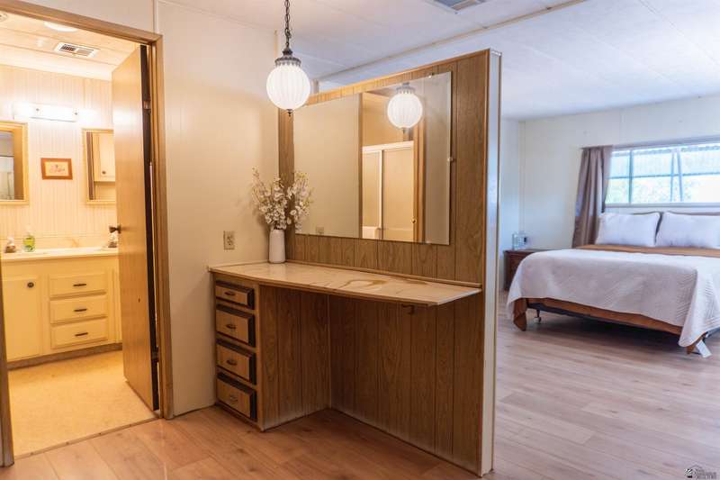 MOTIVATED! MAKE AN OFFER! Great Location at the Back of the Park. Nice Mountain Views from the Property. Partially Furnished Home with Two Bedrooms, 1 and 3/4 Bath, Car Carport, located in 55+ Palm Desert Mobile Estates. Natural Light Flows through the Main Living Space. Large Primary Bedroom. AZ Room and Brick Shed. NO CARPET! NEW LAMINATE FLOORING has been installed in the Bedrooms and THE ARIZONA ROOM! HOA includes Clubhouse, Pool, Community Activities and Flood Irrigation for Landscaping. Close to Shopping and Restaurants. Live in One Unit and You Can Own Another in the Park for an Investment! CHECK OUT THE VIRTUAL SHOWING! Park will Allow a Flipper to Purchase as Long as the Flipper Qualifies for Age Restricted Park.