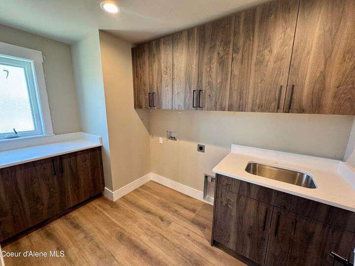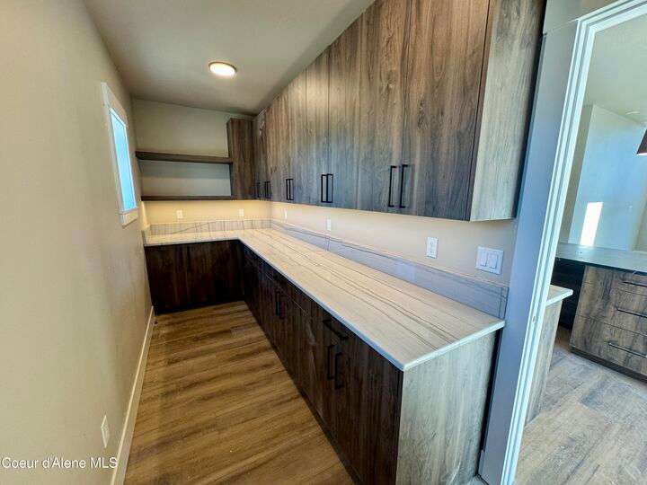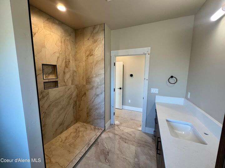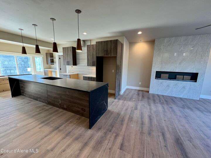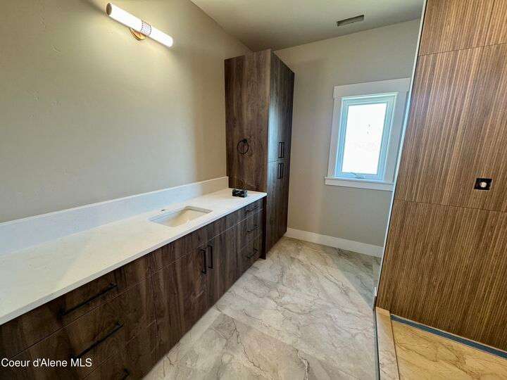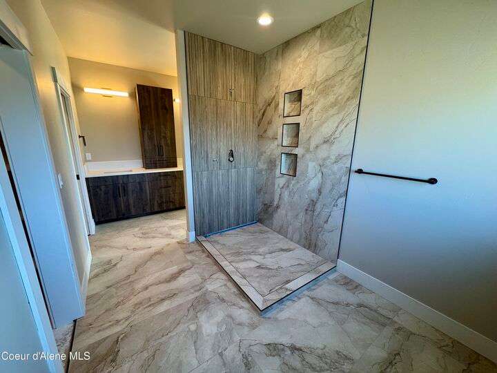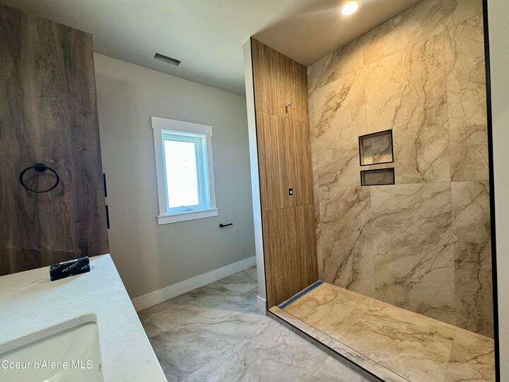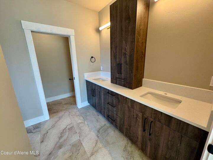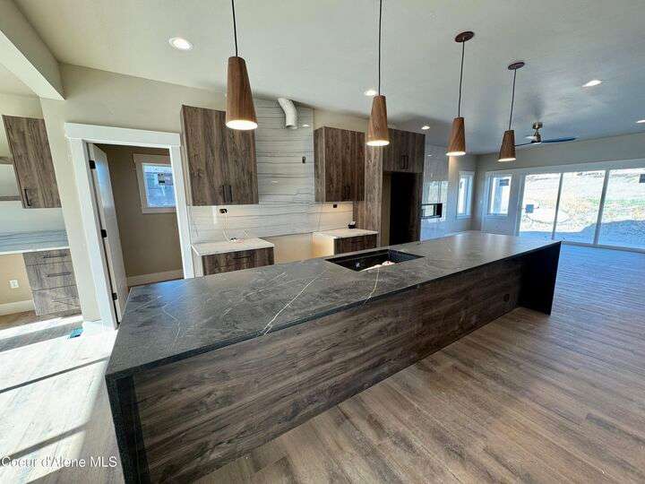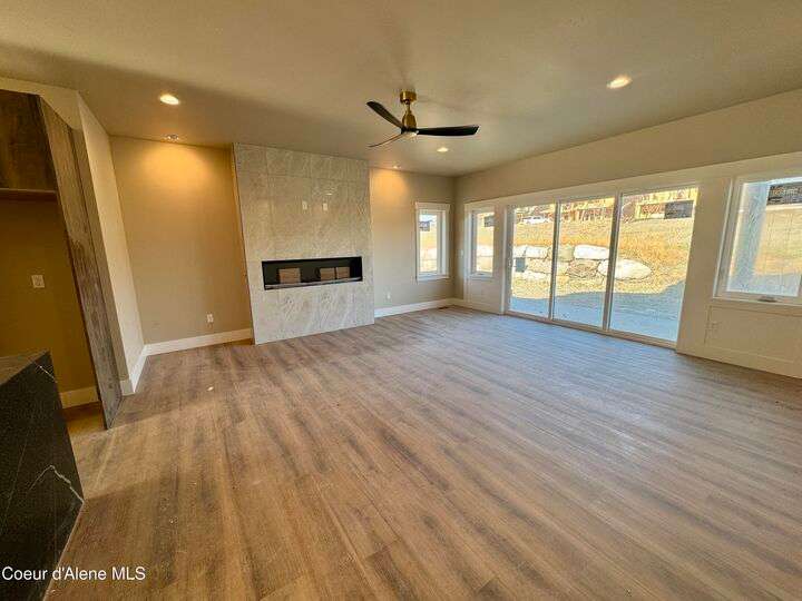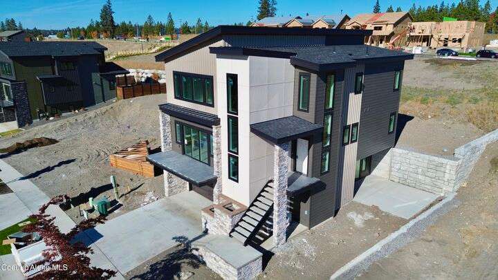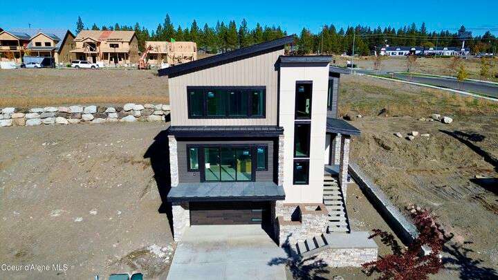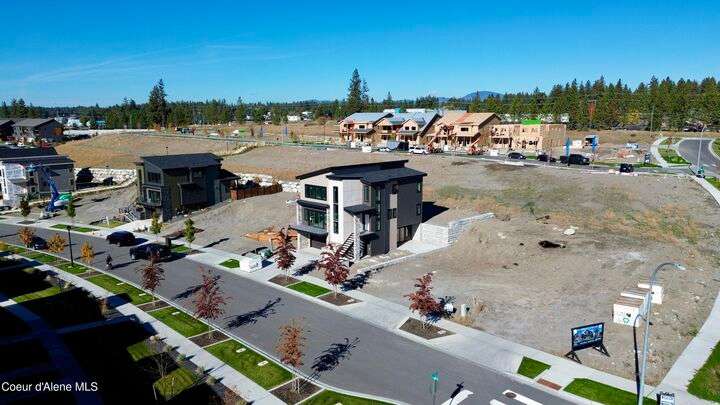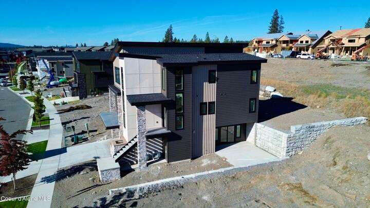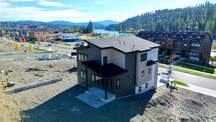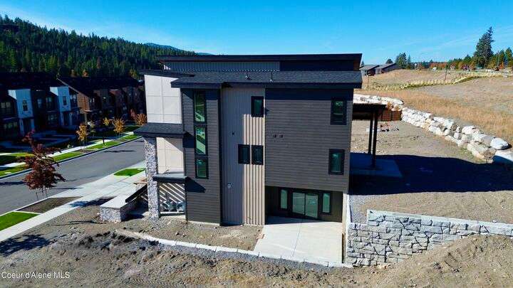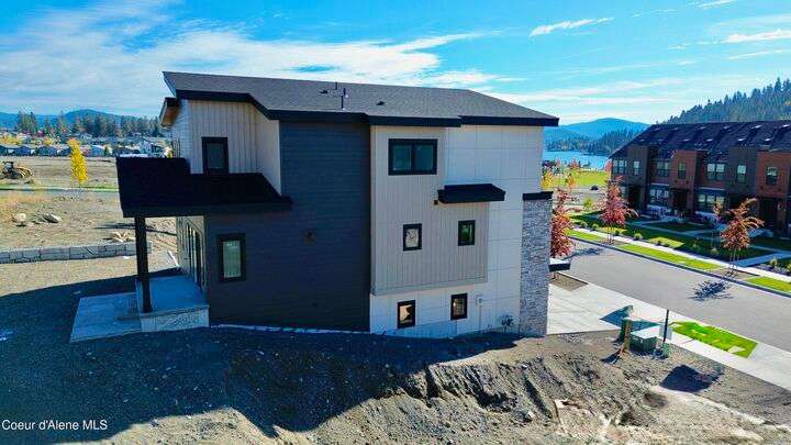 Located in Coeur d'Alene's premier Atlas Waterfront neighborhood, this modern 3,186 sq ft home blends luxury and livability just steps from the river. Featuring 4 bedrooms, 3.5 baths, and three private suites, the layout offers flexibility for guests or multigenerational living. Enjoy three separate patio spaces, rare fully fenced and landscaped backyard—the only backyards in the neighborhood. High-end Café appliances, designer finishes, and contemporary style throughout complete this exceptional new home in CDA's most sought-after community.