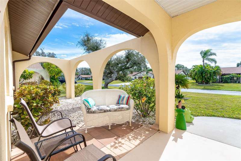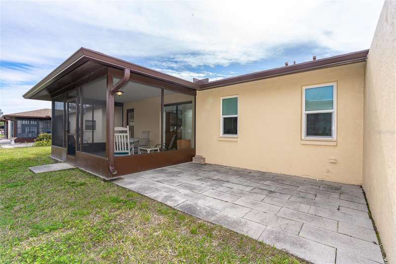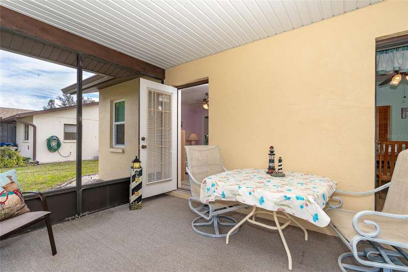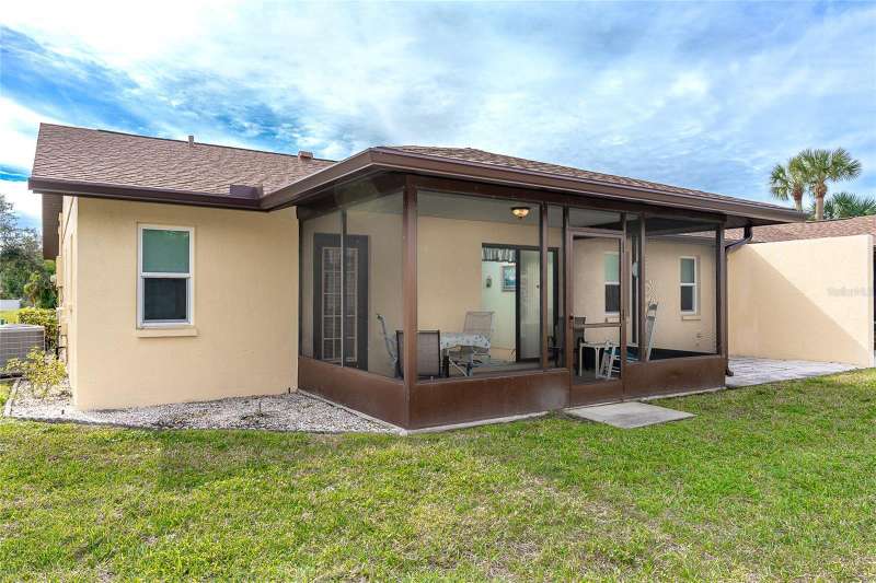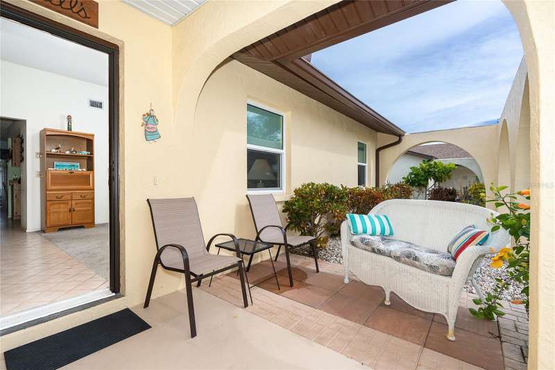 PRICED TO SELL..THIS HOME WON'T LAST LONG!! ROOF WAS REPLACED IN 2023 & HURRICANE WINDOWS INSTALLED IN 2019. THESE IMPROVEMENTS ADD OVERALL VALUE & LONGEVITY TO THE PROPERTY, NOT TO MENTION PEACE OF MIND FOR UNPREDICTABLE WEATHER! Nestled on a private cul-de-sac street, in a tranquil community, this 2-bedroom, 2-bathroom condo offers privacy abound! A split plan condo boasts a spacious master bedroom, walk-in closet, & an access door to a screened lanai. The living room is large enough for family & guests, & is just perfect for both relaxation & entertaining. A 2-10 HOME BUYERS WARRANTY IS INCLUDED & VALID FOR 1 YR. FROM DATE OF CLOSING! A tiled front entry foyer, complete with aluminum glass/screen door, gives a view of the outdoors & lets in the evening breezes to enjoy. For the chef in your family, the kitchen has plenty of counter space, newer stainless-steel appliances, closet pantry, & double sink, catering to both functionality & style. The pass-through window from the kitchen to the dining area provides ease of entertaining & includes 2 louvered shutters for privacy, when preparing delicious meals for family or guests. A screened lanai is the perfect retreat for enjoying the great outdoors of your private backyard. Whether you sit & read the paper with a morning coffee, or catch an afternoon nap, the tranquility of the yard makes it indeed, the place to be! The additional uncovered patio area in the backyard, is the perfect space for outdoor hobbies & additional space for relaxing in the sun. If you prefer to visit your neighbors with a friendly wave, then enjoy sitting on your private front porch. This condo has adequate indoor closet space for linens & household equipment, as well as a single car garage, complete with washer, dryer, utility sink, shelving, built-in workbench for your DIY projects, & sliding garage door screens. Each room has a ceiling fan, for added comfort & energy efficiency. Most furnishings included, creating a move-in ready experience, with only a few exclusions & personal seller items. A short distance to the sparkling blue, heated, community pool, is ideal for cooling off after a day at the many nearby beaches. Also, just steps away, is a community mailbox & additional guest parking. This community is perfectly located for easy access to shopping & dining, not to mention, world class fishing & boating, public boat ramps, & many golf courses. Our pristine beaches include local & casual eateries nearby, for a perfect day in the sun. Also nearby, Historic Dearborn offers Pioneer Park, a farmers' market, locally owned shops & restaurants, & varied forms of evening entertainment, that will surely please just about everyone! The quarterly dues include landscaping, irrigation system (serviced by a well), full exterior maintenance (including roof replacement and repair), exterior and interior insurance coverage (contents are not included), basic cable and use of the community pool. The community of High Point is deed restricted, locally managed, & has no age restriction. Two pets are allowed per unit (request rules & regs for further info). This condo creates a perfect blend of comfort, convenience, & a tranquil setting, making it an ideal place to call home. Whether you are enjoying the charm of this quiet community or being conveniently close to the best the area has to offer, this property will afford you a lifestyle of comfort. Easy to show, schedule your appt. today!
