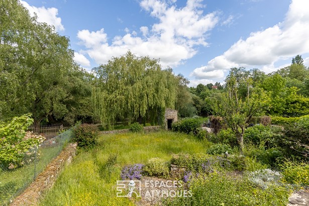 At the rear of the house, the terrace and garden offer a bucolic setting, punctuated by the tranquil flow of the Orne river. A wooded environment, conducive to relaxation and conviviality. The entire plot is oriented to capture optimal sunlight.