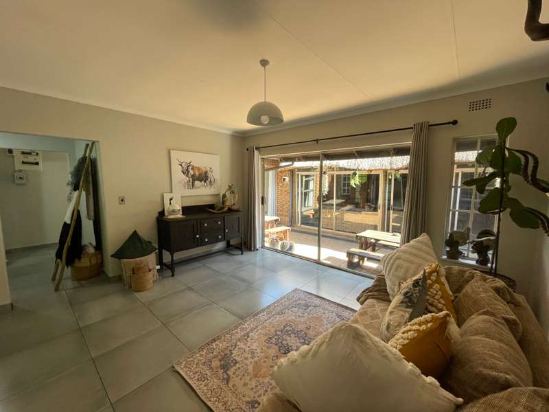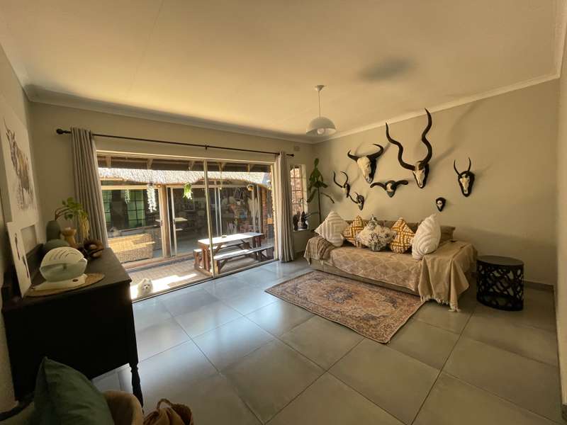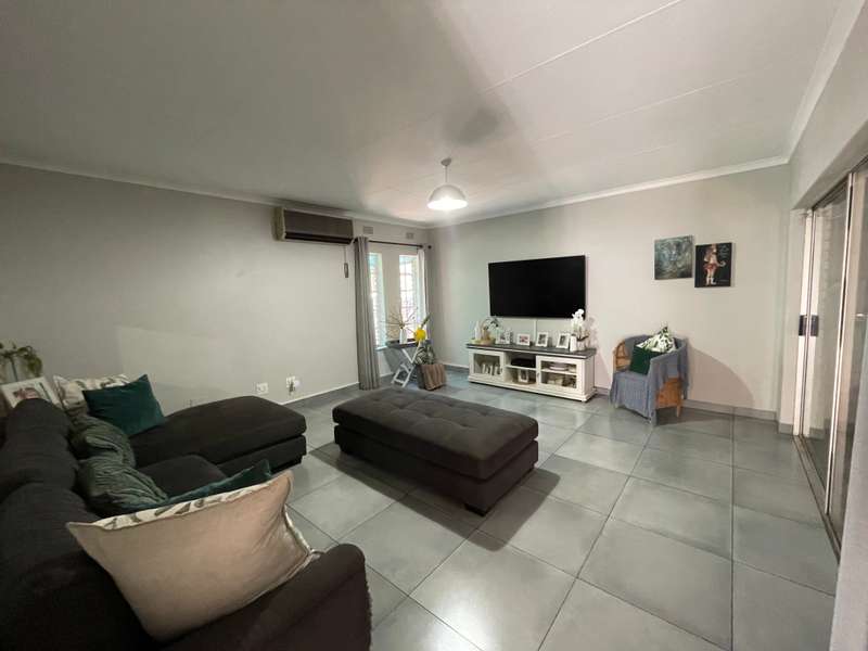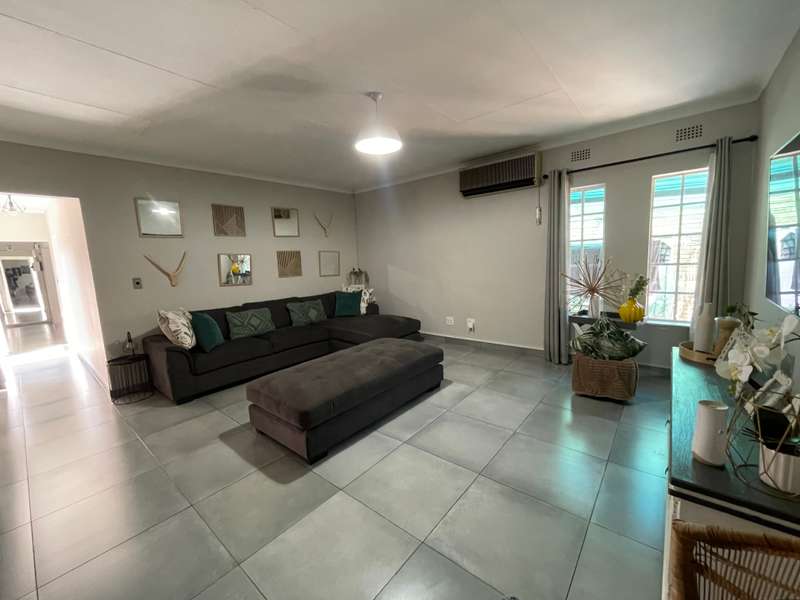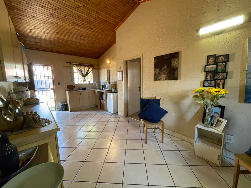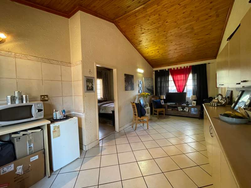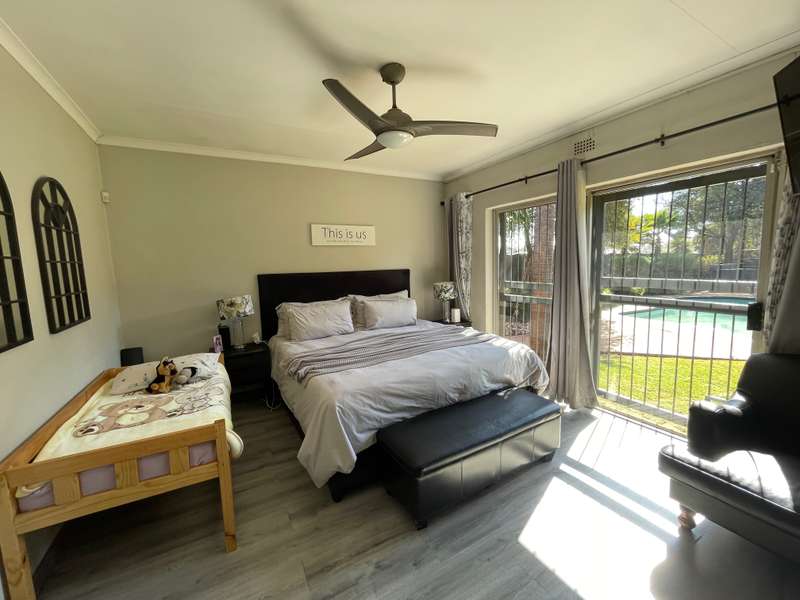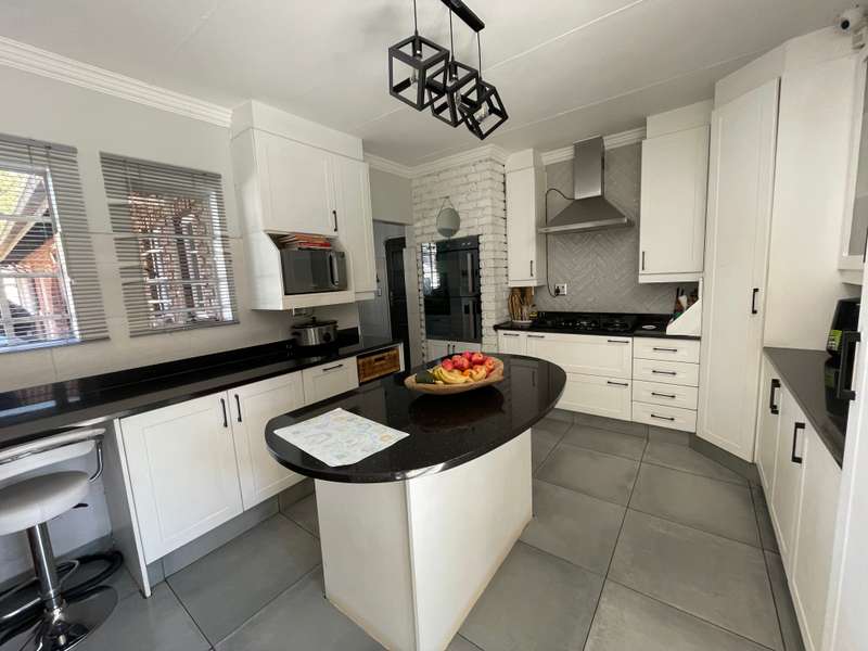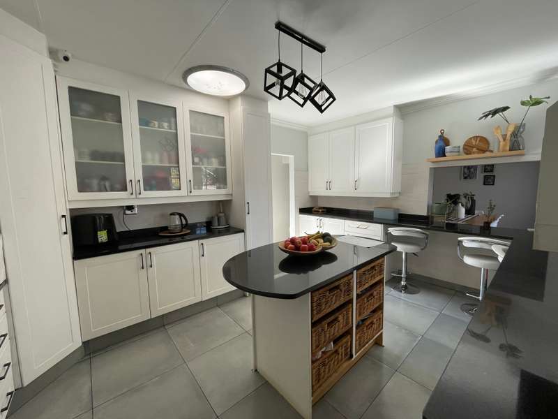 Situated in the heart of the sought-after suburb of Kenleaf, this expansive 5-bedroom family residence offers the ultimate in luxury, space, and security. Set on a generous 1,300m² stand with an impressive 615m² under roof, this home is ideal for families seeking both comfort and functionality. Upon entering, you are welcomed into a spacious layout boasting five well-sized bedrooms and four stylishly finished bathrooms. The main bedroom features an en-suite bathroom and ample built-in cupboard space. Each room is designed to capture natural light, creating a warm and inviting atmosphere throughout the home. The living and dining areas flow seamlessly into a beautifully appointed entertainment space, perfect for hosting guests or enjoying quality time with family. Large sliding doors open out to a sparkling swimming pool, creating a perfect indoor-outdoor lifestyle. The property also includes a fully equipped flatlet, ideal for extended family, guests, or generating additional income. For the eco-conscious buyer, this home is fitted with a solar system and a backup water tank, ensuring energy efficiency and water security. Additional features include an alarm system, exterior beams, and CCTV cameras, offering peace of mind with comprehensive security. The modern kitchen is the heart of the home, complete with quality finishes, ample cupboard space, and a separate scullery. The property also includes secure parking and neatly landscaped gardens, enhancing its overall appeal. Located in a peaceful, established neighborhood, this Kenleaf gem offers proximity to quality schools, shopping centers, and major routes while maintaining a tranquil residential feel. This property offers a unique combination of luxury living, practicality, and modern convenience—ready for you to move in and make it your own.
