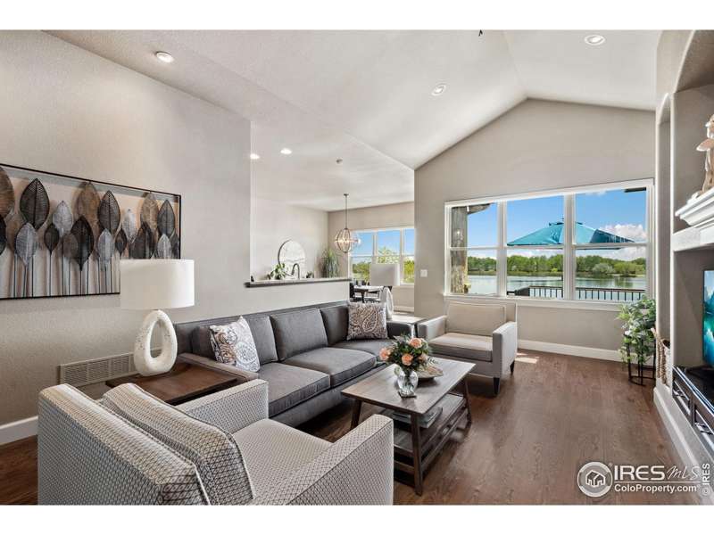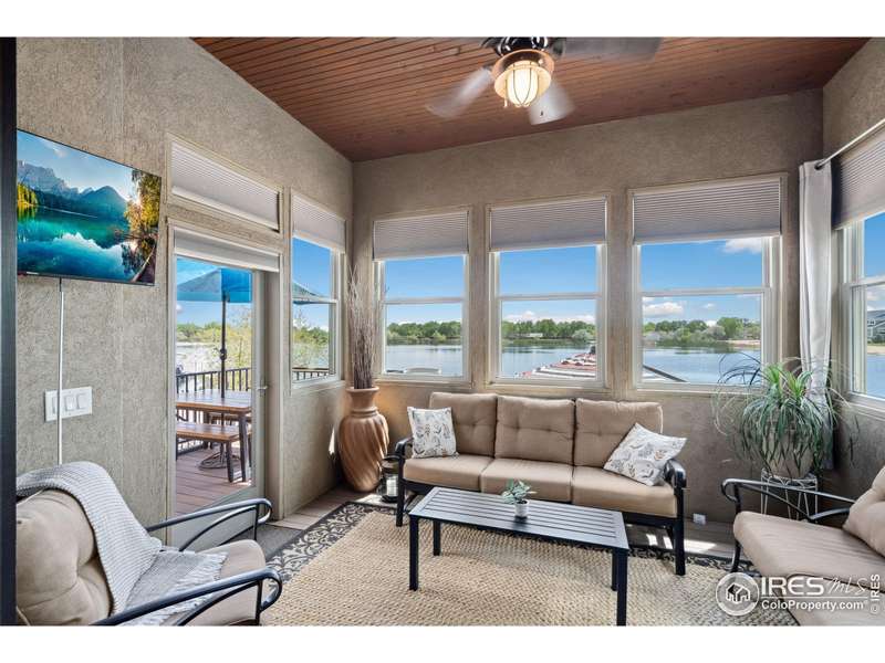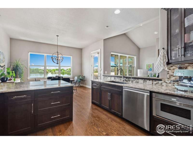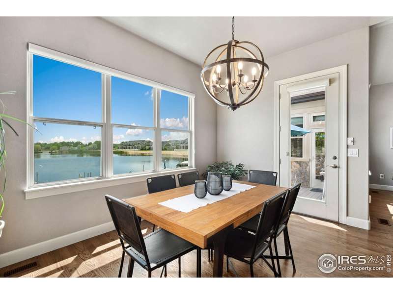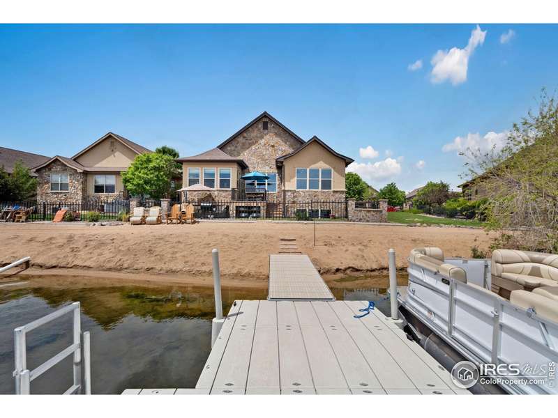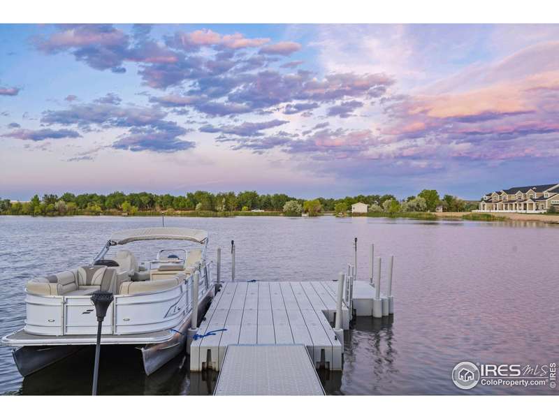 Here's your opportunity to own a beautiful patio home on Eagle Lake in Water Valley South. Ideally situated to capture breathtaking sunrises from your deck, dining area, or enclosed 3-season sunroom, this home also offers the perfect setting for outdoor entertaining. Your boat can stay tied all summer to your personal dock or take it to one of NoCo's other fine lakes via the community ramp right across the way. Oversized 2-car garage is fully finished & HOA covers lawn care, but there is plenty of room for your personal flower & garden touches. Inside, there are brand new hardwood floors, new windows, fresh paint, and an upgraded kitchen with beautiful granite countertops, glass tile backsplash, and upgraded appliances- including an induction stovetop and oven, steam oven, and custom refrigerator. There are 3 bedrooms + a main floor office and 3 full baths. Finished garden level basement includes built-in entertainment center, charming wine cellar, and full wet bar with wine fridge and dishwasher + huge storage area. Two incredible living spaces- one on each level- & you'll love the open floor plan. Neighborhood amenities include trails, award-winning Pelican Lakes Golf Course, ponds with fountains, pickleball/tennis court, and community grill/picnic area. (Eagle Lake allows motorized boating at