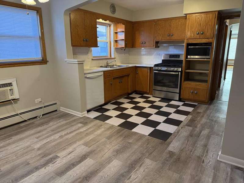 WIDE & SPACIOUS OPEN FLOOR PLAN IN THIS SUNNY TOP FLOOR APT. LONGER TERM RESIDENTS NEEDED. ENJOY THIS LIGHT FILLED 3 BED 1.5 BATH APT WITH EAT-IN KITCHEN - NEWER FLOORS & MORE. APPROX 1500 S.F. CLOSE TO JEWEL GROCERY, LIBRARY AND PUBLIC TRANSPORTATION. CONVENIENT IN JEFFERSON PARK JUST WEST OF CENTRAL. BONUS THREE SEASON REAR PORCH WITH TONS OF STORAGE. SINGLE CAR GARAGE SPOT AVAILABLE $100, ACCESSIBLE FROM ALLEY. NO DEPOSIT COLLECTED, $1000 MOVE IN DUE AT LEASE SIGNING, pet welcome/fee. PRIVATE COIN LAUNDRY IN BASEMENT. AGENT OWNED/INTEREST. NO SMOKING, VAPING, E-CIG, NO SMOKE. Price includes 2 persons. Over 2 persons $35/mo addl util cost. LEASES TO END IN SPRING 2027.