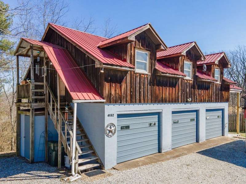 Need a Place to Live While You Build Your Dream Home? Here You Go...1 or 2 Bdrm Apartment above a 3-Bay Garage on 8+Acres (The Apartment lies within the City Limits, but the Land in back does Not) Nice Level Area to Build! FEATURES & UPGRADES...~Elevator on the Right Side Porch ~14x7 Covered Porch/Balcony ~Large Laundry Room/Closet ~2-Car Carport ~Tons of Storage ~Cypress Board & Batten Exterior ~Great Space for a Young Couple ~14x30 Workshop Area ~The Potential to Finish more of the Garage Area ~The Land Perked for a 3Bdrm in October of 2021(Expired Permit)