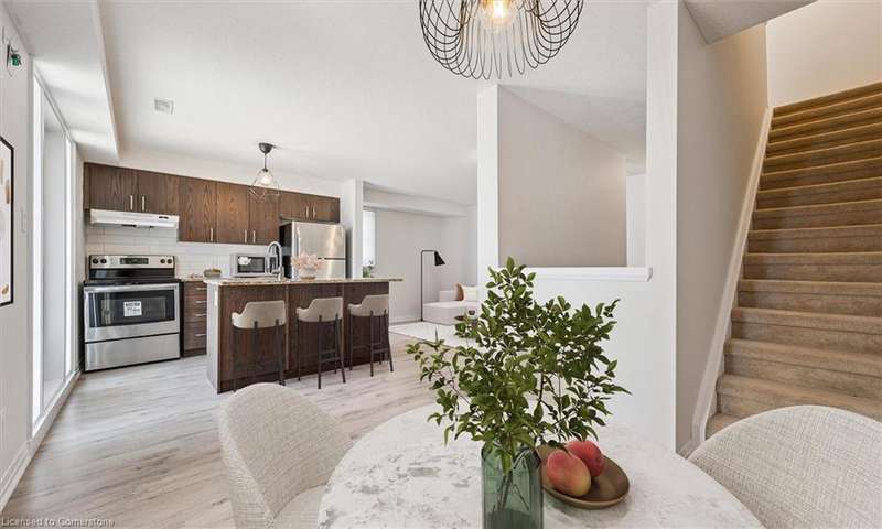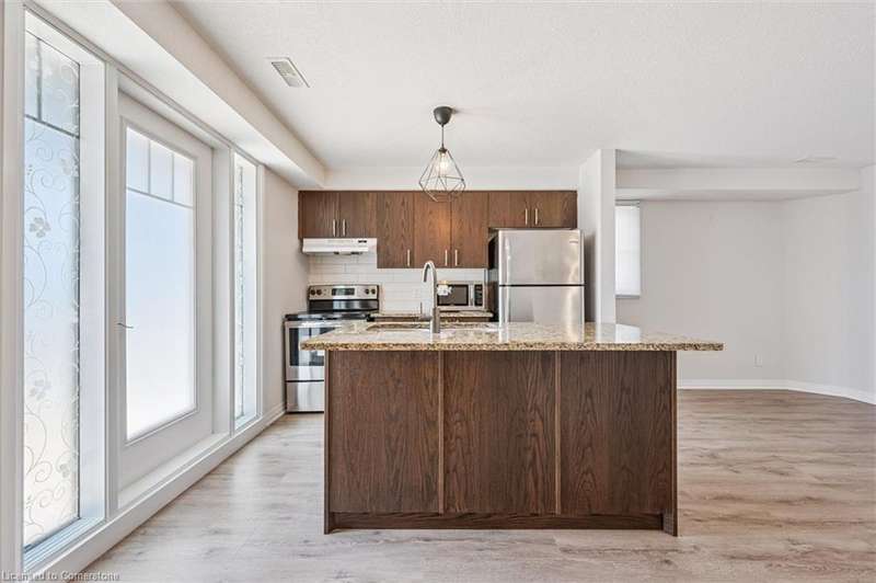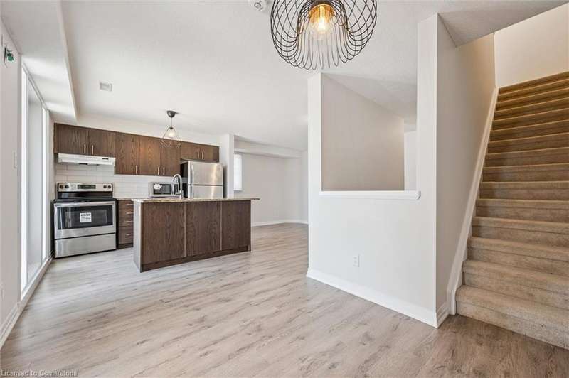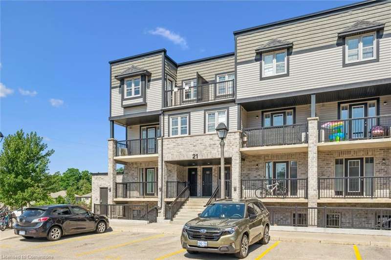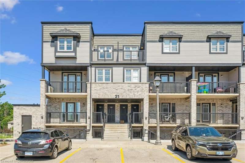 Welcome to 1989 Ottawa Street South, Unit 21B. Discover this gorgeous corner unit stacked townhouse in the heart of Kitchener’s vibrant and convenient Laurentian Hills community. This bright and beautifully maintained 2-bedroom, 2-bathroom home is perfect for first-time buyers, downsizers, or investors alike. Step inside and enjoy the airy, open-concept layout, flooded with natural light thanks to the extra windows only a corner unit can offer. The spacious living and dining areas flow seamlessly into a modern kitchen, making entertaining easy and comfortable. The primary bedroom is a true retreat, featuring a private balcony—perfect for your morning coffee or relaxing in the evening. A second spacious bedroom, a full bathroom, and in-suite laundry add to the home’s functionality and comfort. Whether you're looking to enjoy peaceful strolls on nearby trails, convenient shopping, or a quick highway commute, this location offers it all. Don’t miss your chance to own this rarely available corner unit in a family-friendly, amenity-rich neighborhood. Book your private showing today! Photos virtually staged