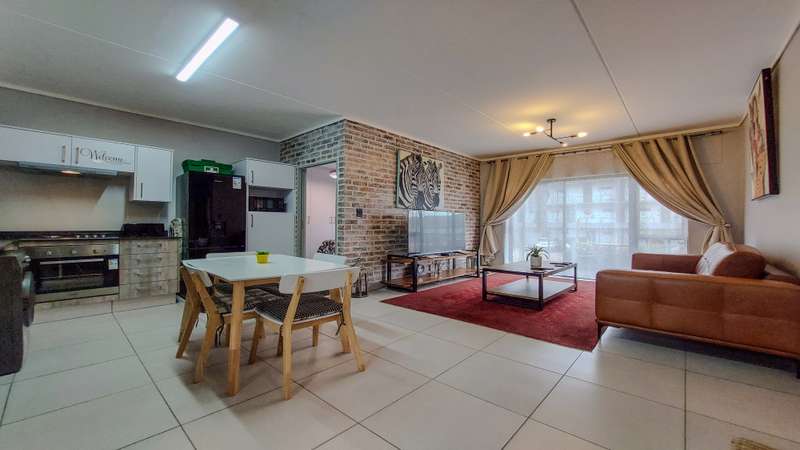 This estate is opposite Curro Academy. It is a ground floor apartment offers 2 bedrooms and 2 bathrooms. Sliding door from the lounge that leads you outside open patio. This unit is fitted with gas appliances, built-in water systems, and fast fibre internet