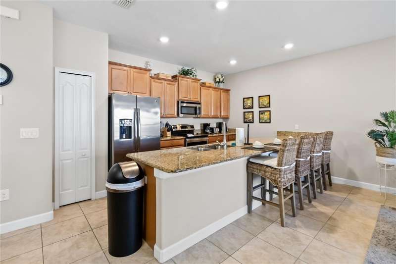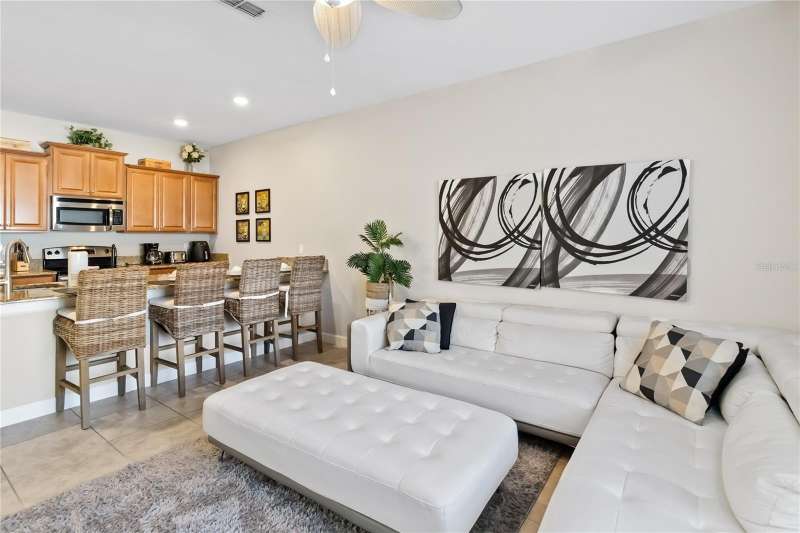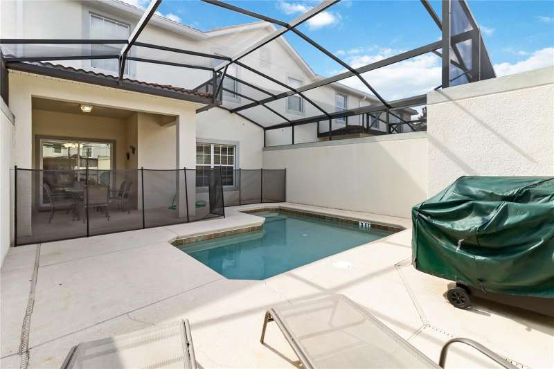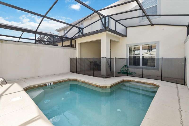 **Seller agrees to pay 1st month of Buyers Mortgage at closing** Beautiful townhome with 4 bedrooms, 3 full bathrooms, and private pool! This home has a modern open concept floor plan, with nice outdoor area to enjoy Florida weather. Screened Pool and covered seating area. First floor has a bedroom and a full bathroom. Second floor has spacious Master Bedroom with private bathroom, two bedrooms, and one bathroom. Laundry is conveniently located upstairs. Furniture and turn key package included! No carpet! Storey Lake is a 24 hour guarded community in Orlando, with amazing amenities such as Pool, Fitness Club, recreational area and extra activities. It is also close to Parks, Restaurants and Highways! You are going to love this cozy home sweet home!