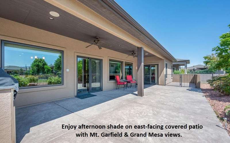 Luxury Low Maintenance home at its finest. Summer Hill gem with one of the best views in the neighborhood. A sprawling, east-facing covered patio (think afternoon shade) looks out over open space and a pond to Mt Garfield and the Grand Mesa on the horizon. Inside does not disappoint either. The 2270 Sq Ft split ranch displays an open floor plan with engineered hard wood floors and a 9-foot trayed ceiling. Large windows take advantage of the views and bring the outside in. Kitchen boasts a large pantry with roll-out shelves, Granite counters, lots of cabinet space & eat-at island bar – Ideal for entertaining. Primary Suite features a wonderful walk-in shower, granite vanity, spacious walk-in closet & direct access to patio. Heated 3-car garage with tandem parking on one side with room for a workshop. All info, including measurements, should be verified by buyer.