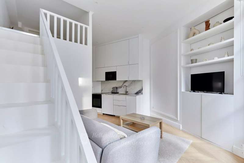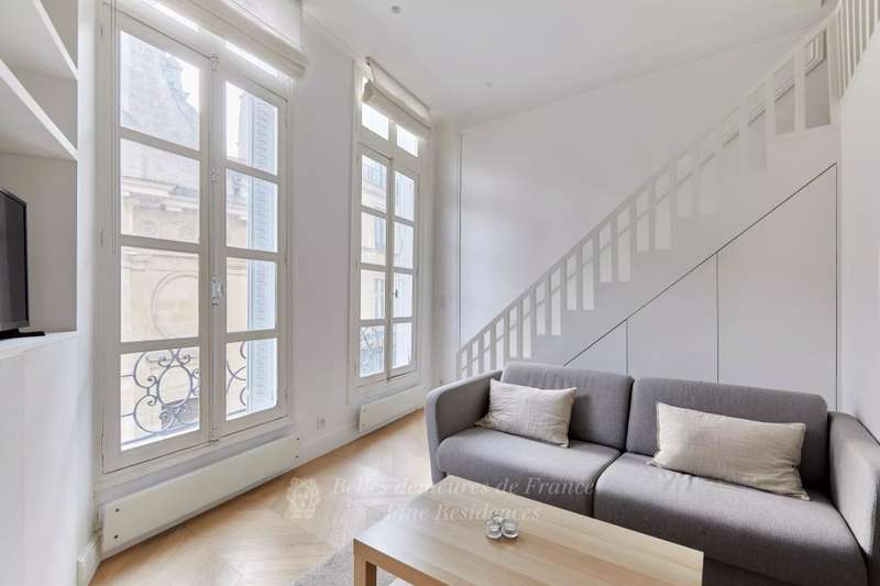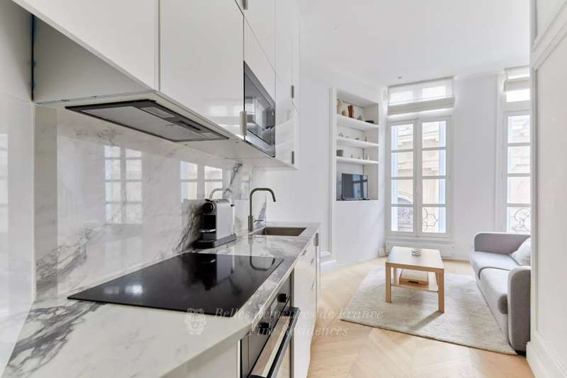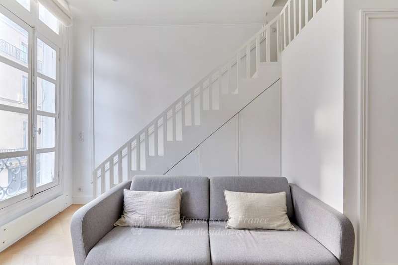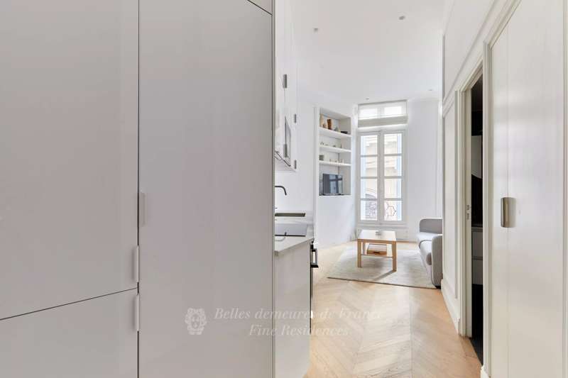 This elegant apartment bathed in sunshine is on the 2nd floor of a listed late 19th century building located in the heart of the capital’s prestigious Saint-Honoré neighbourhood. Enjoying an open view, it offers 30 sqm of recently renovated floor space (27.11 sqm of living space as defined by the Carrez law) including a living room with an equipped open-plan kitchen, a mezzanine bedroom area, and a shower room with a wc. Period features include 3.40 metre high ceilings. The building is not equipped with a lift.