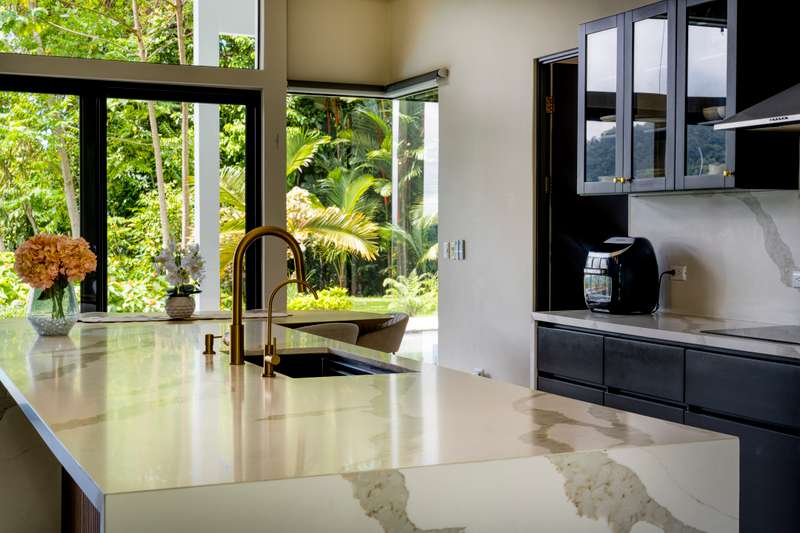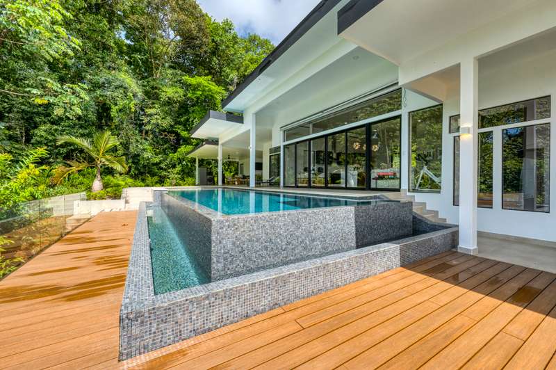 Discover the ultimate in luxury and privacy with this stunning 3 bedroom, 3.5 bathroom estate nestled on 3.79 acres of pristine land, bordered by tranquil freshwater creeks. Perfectly positioned on a mountainside just 15 minutes from the beach and waterfalls, this property offers expansive ocean and jungle views, unmatched outdoor living, privacy and thoughtful design throughout.