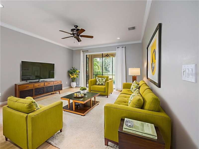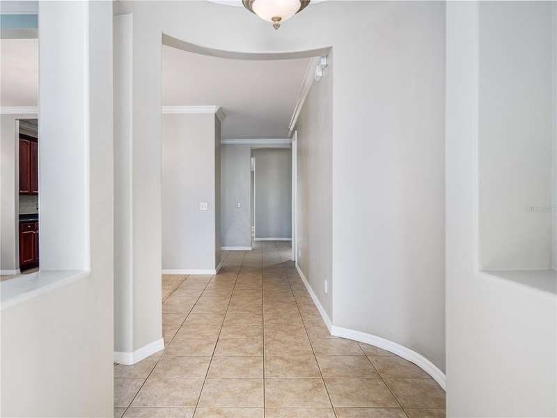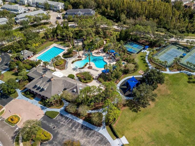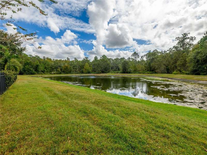 One or more photo(s) has been virtually staged. Welcome to resort-style living in Grand Hampton. Enter through the manned gate of this beautiful community to find this 3-bedroom + flex space, 2-bath, 2-car garage home. It features an open floor plan with a spacious formal living/dining area and a kitchen with abundant cabinet and counter space, open to the inviting family room. The split-bedroom layout offers privacy, with the primary suite boasting a walk-in closet, dual vanities, garden tub, and separate shower. Two additional bedrooms are separated by a den/game room area, perfect for work or play. Enjoy the tranquil screened porch overlooking the fenced backyard and peaceful pond. The welcoming front porch is highlighted by stonework and the tile roof adds to the architectural interest of the home. Residents of Grand Hampton have access to two pools, a state-of-the-art fitness center, tennis and basketball courts, playgrounds, a fishing pond with dock, and manned gate access. Conveniently located near Bruce B. Downs Blvd and I-275/I-75, with shopping, dining, and entertainment just minutes away. USF, Moffitt, the VA, USAA, and all the conveniences of Wesley Chapel are within reach as well.