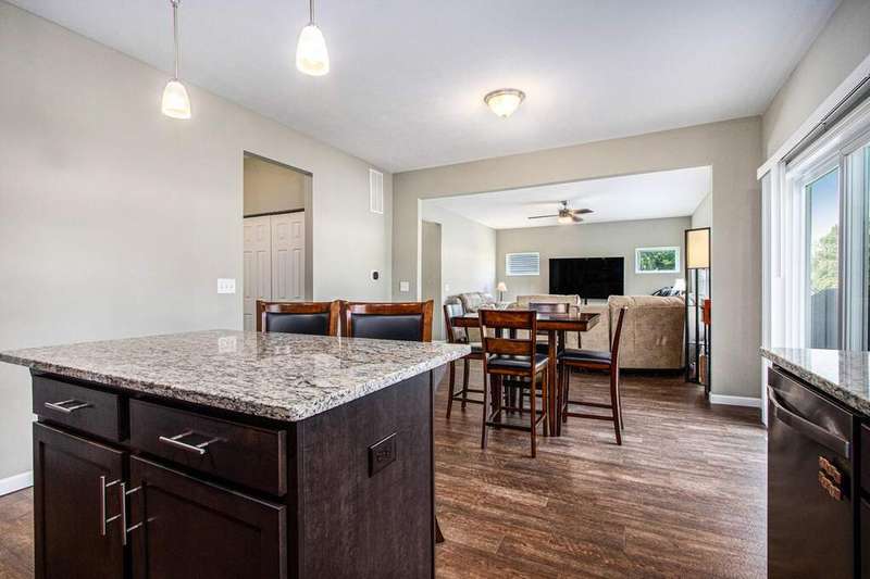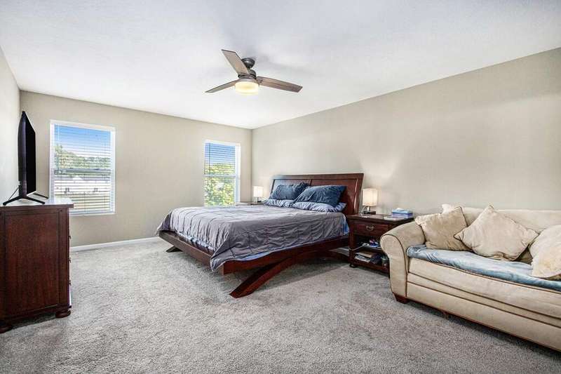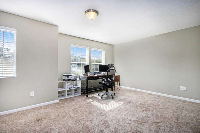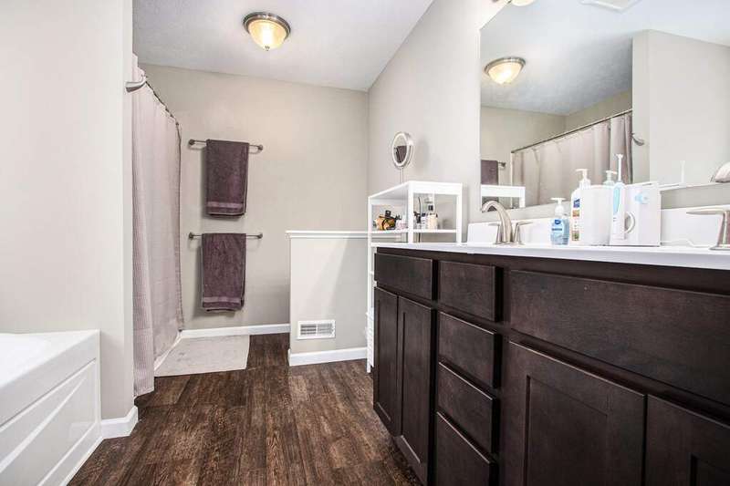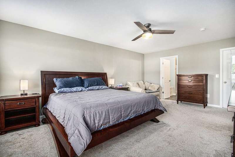 Welcome to Trumpeter Bay! Built in 2017, this 3-bed, 2.5-bath home offers water views from both the front and back,& 59' of private lake frontage. Launch your kayak or paddle boat right from the backyard and enjoy peaceful neighborhood docks and walking paths. Inside, durable vinyl plank flooring spans the main level, where a bright living area flows seamlessly to the dining space and out to a huge deck overlooking the lake-perfect for entertaining or quiet evenings outdoors. A versatile main floor flex space works beautifully as a home office, gym, or could be converted to a bedroom. Upstairs, the game room provides extra living space or potential for a 4th bedroom. The primary suite is a true retreat with spa-style ensuite bath and massive walk-in closet. Two additional bedrooms, a full bath, & convenient upstairs laundry complete the level. With a crawl space featuring scooters for easy access, this home blends modern comfort with tranquil lakeside living. Welcome home.