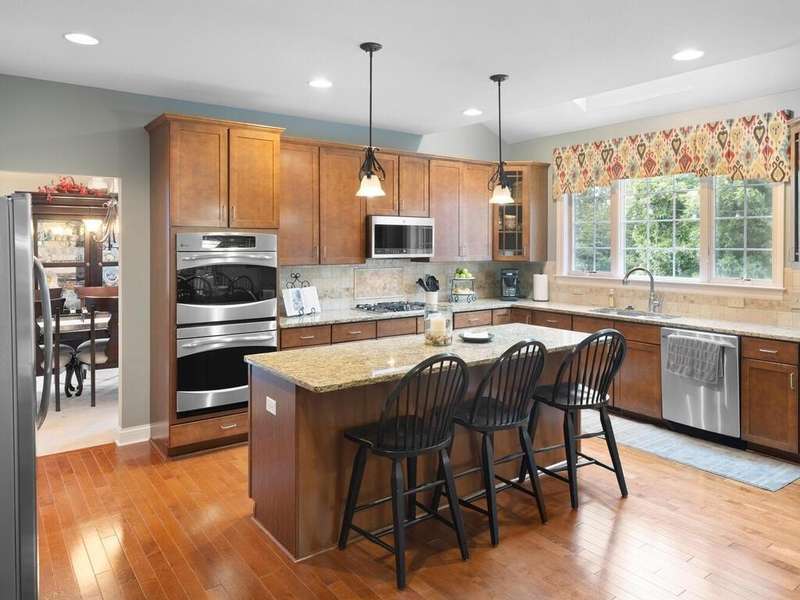 Live the lakeshore lifestyle in Spring Lake Estates with deeded access to Spring Lake, a private dock slip, sandy beach, and fishing pier—just steps from your door! This stunning 5BR, 4BA home in Prior Lake Schools offers over 5,900 SF of move-in-ready space, perfect for lake lovers. Enjoy a 2-story great room with breathtaking views, a chef’s kitchen with granite counters, stainless appliances, and a walk-in pantry. The upper-level features 4 spacious bedrooms, including a luxurious primary suite with walk-in closet and spa-like bath. The walkout lower level is made for entertaining with a wet bar, game room, family room, and guest suite. Relax in the screened patio or on the deck overlooking the wooded yard. Just a short walk or golf cart ride to Spring Lake Regional Park with trails, dog park, and paddle/kayak launch. Recent updates include landscaping, fresh paint, and custom storage. This is your chance to own lakeshore access in a private, peaceful neighborhood!