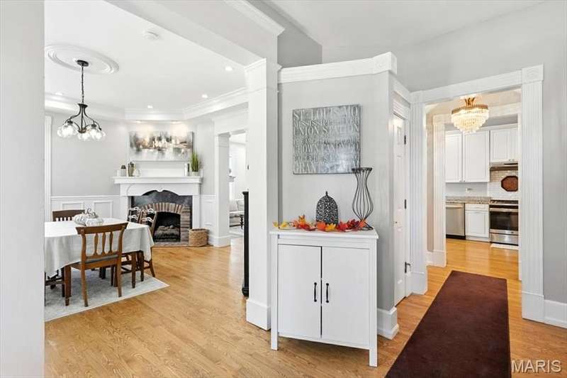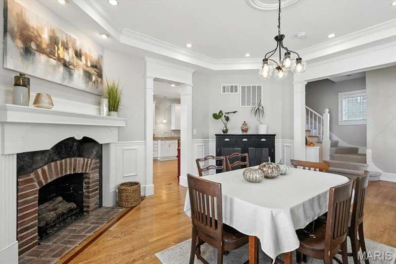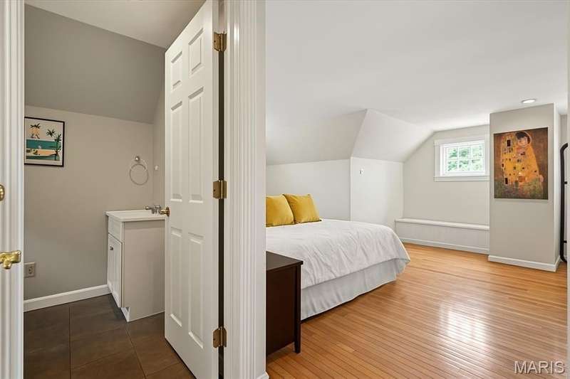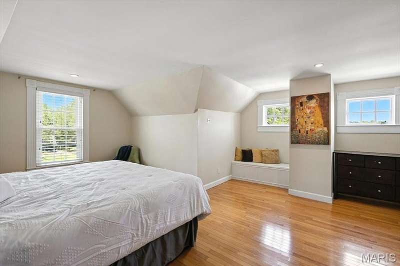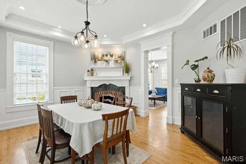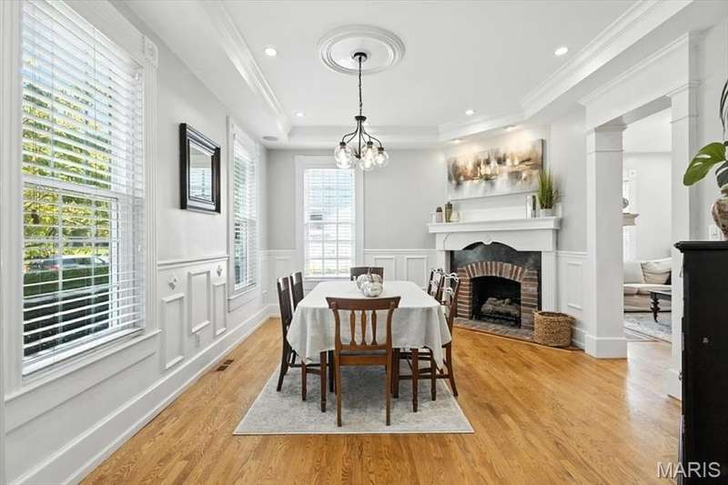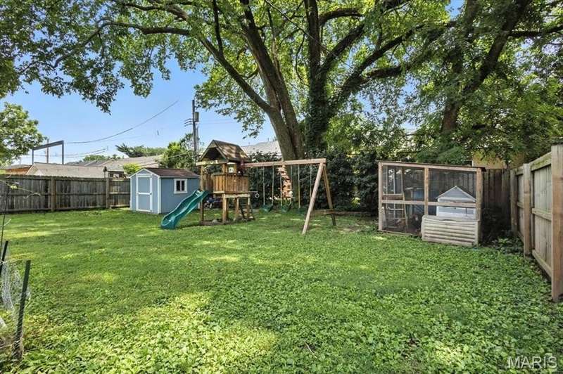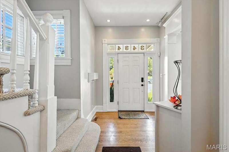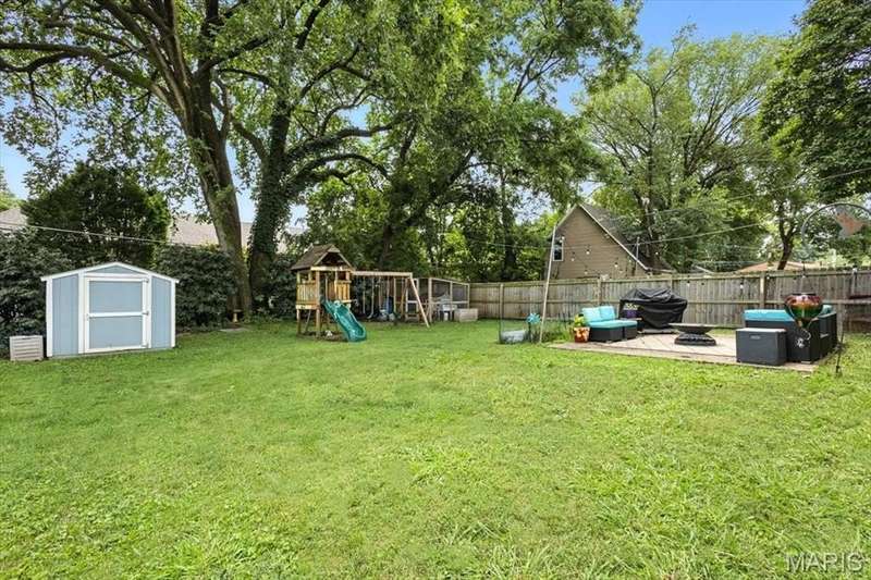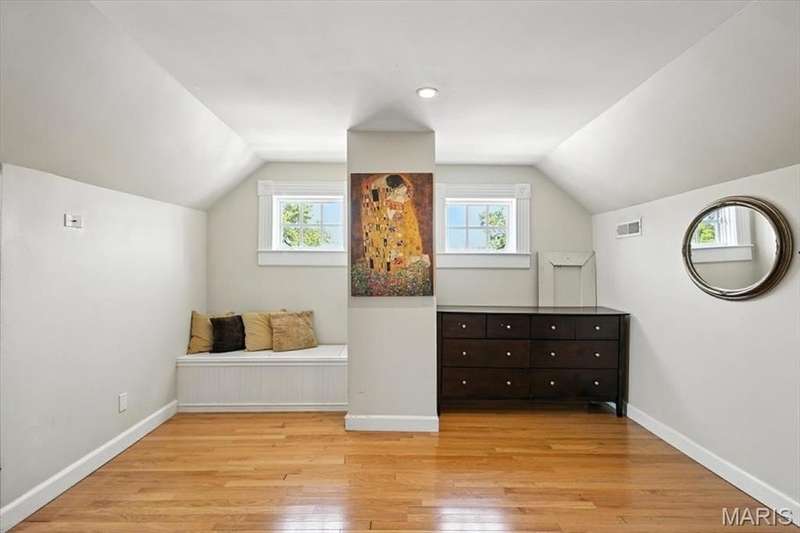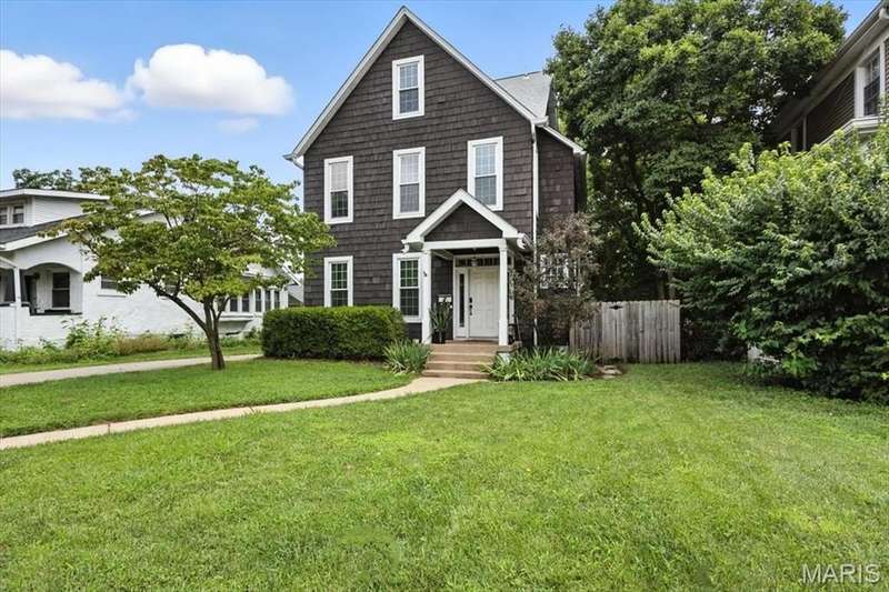 All aboard! Have front row seats to the past and the future with this Cape Cod charmer. This 1895 gem, wrapped in classic wood shake siding, sits across the street from the tracks in a no-horn zone — where neighbors love the quiet, rhythmic rumble of trains rolling past. This was a train town long before it became part of Route 66, and this home proudly carries that legacy forward. The original Maplewood train depot was just a block to the east, and the city's historic district is a block to the west. This property is the oldest on its block by five years and has witnessed tremendous change over the decades. The upcoming Great Rivers Greenway will be the next transformation, turning the front door into a gateway to an outdoor lifestyle. Imagine having a boundless connection to the metro area via trails — plus living mere blocks from Maplewood restaurants, parks, shops and activities! This home connects history, community and convenience all in one spot. Inside, timeless character meets modern comfort. The spacious, light-filled entry showcases period woodwork and fresh, neutral paint. Ten-foot ceilings and an abundance of windows fill the home with natural light, highlighting the hardwood floors found throughout most areas. Recessed lighting and ceiling speakers throughout elevate the living experience. The spacious kitchen features granite counters, stainless appliances and a large gas range, opening seamlessly to the family room and dining area. Gas fireplaces in the family and dining rooms offer glimpses into the home's 130-year history. Up the freshly carpeted staircase are two bedrooms and full bath; the larger room could easily be divided to create a fourth bedroom. From the landing, retreat up the winding wood stairs to the private primary suite on the third floor, where sunlight dances across the hardwood floors and the cross gable roof creates cozy, inviting spaces. Back on the main floor, exit out the side door to one of the larger lots in the city — fully fenced for privacy and perfect for pets or play. Enjoy the huge shade tree, large concrete patio, wood play set and storage shed, with plenty of grassy space left to garden or relax. The clean, bright lower level includes a laundry area, full bath, storage galore and walk-up access to the back yard. The zoned HVAC keeps every floor comfortable year round. With its large lot, open layout, and unbeatable blend of history and lifestyle, this Maplewood treasure isn’t just a house — it’s a home with personality, community, and a front row seat to the best of the past and the future. Updates: Downspouts, carpet and paint 2025; water heater 2024; roof 2019. Municipal inspection has been passed.